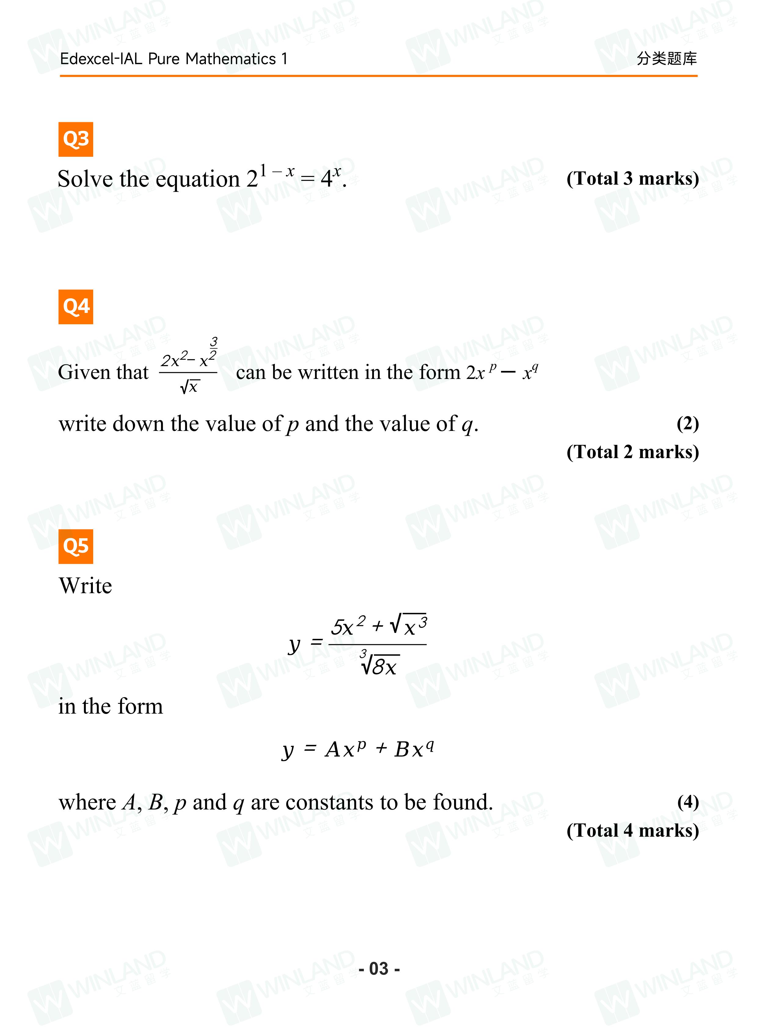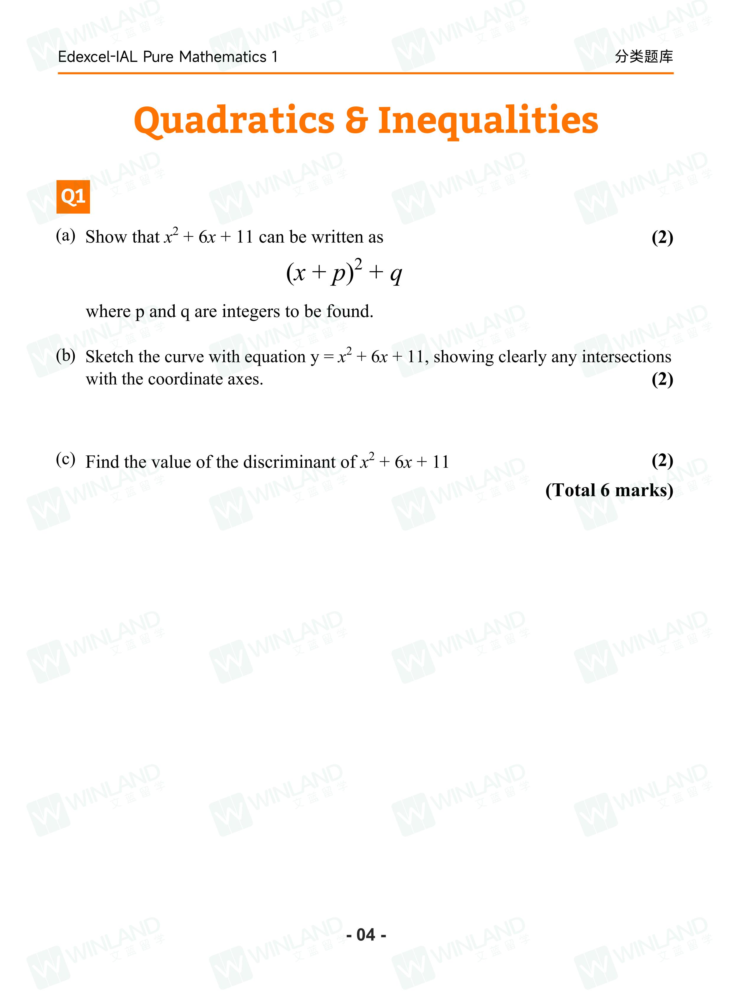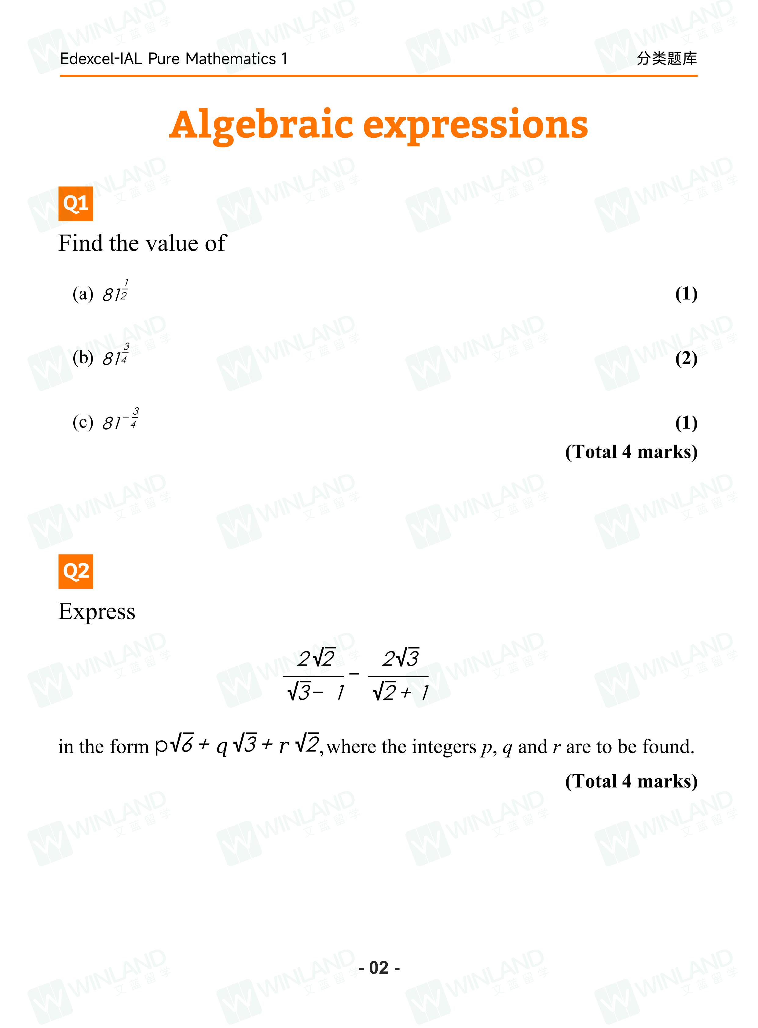 1、爱德思ALEVEL【Pure Mathematics 1 分类题库+答案解析】(电子版)