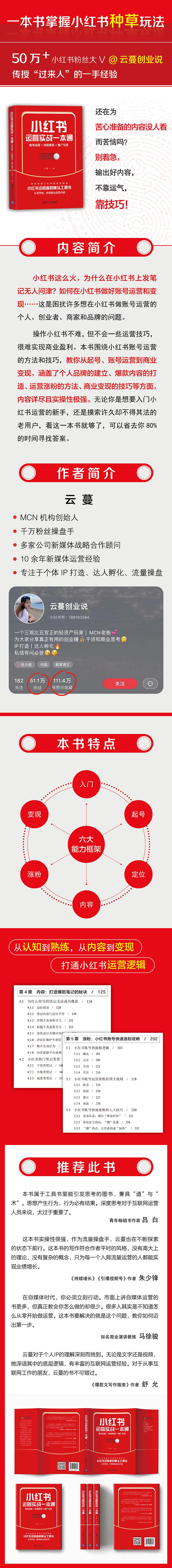 本书是一本可以随时查阅的工具书,适合小红书的品牌商家、创业者、电子商务从业者参考学习,也可作为企业电商岗位培训教材,还可供小红书相关从业人员参加就业培训、岗位培训使用。