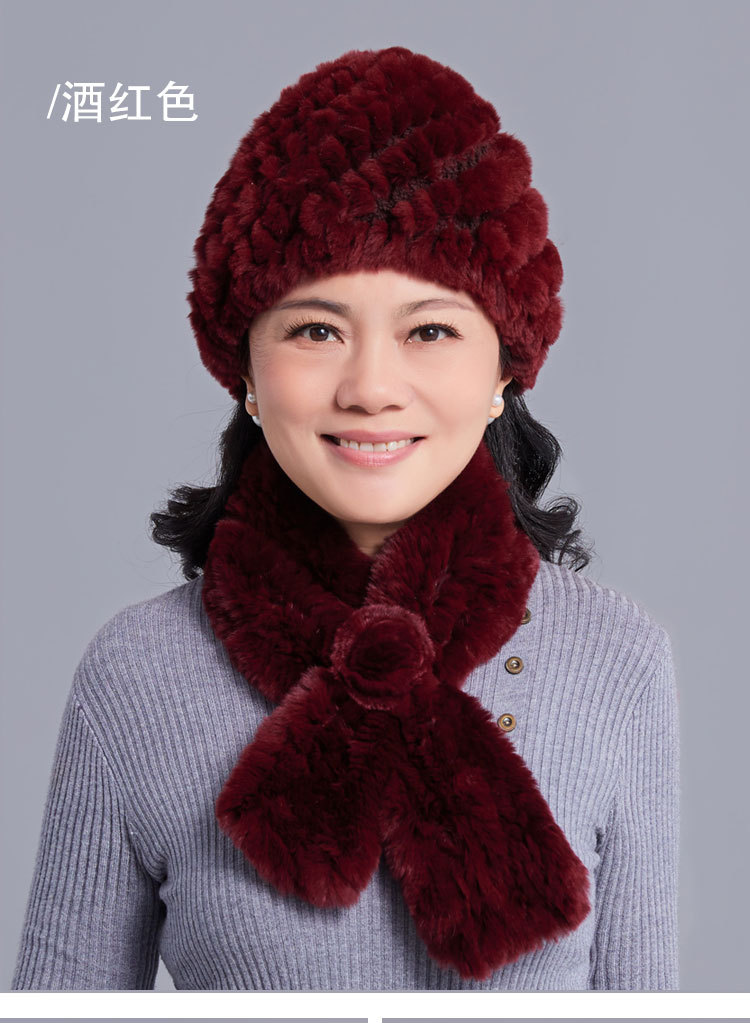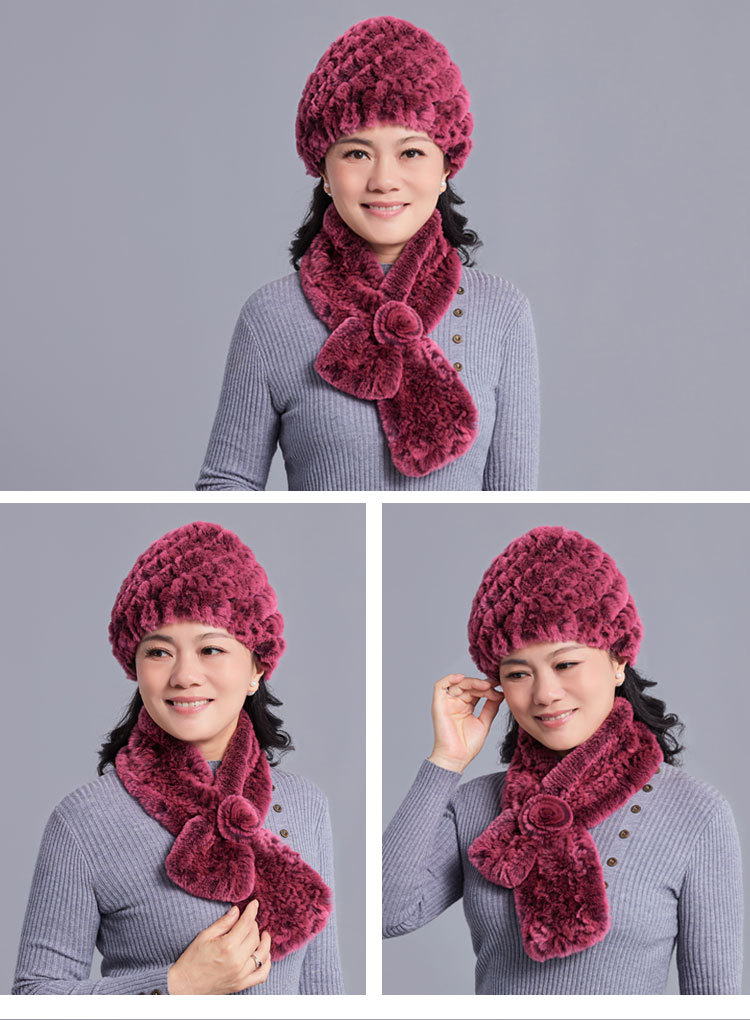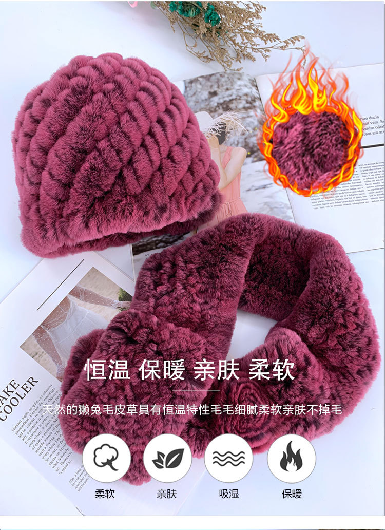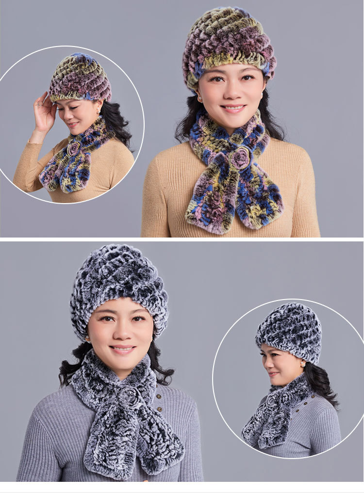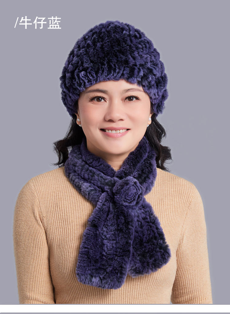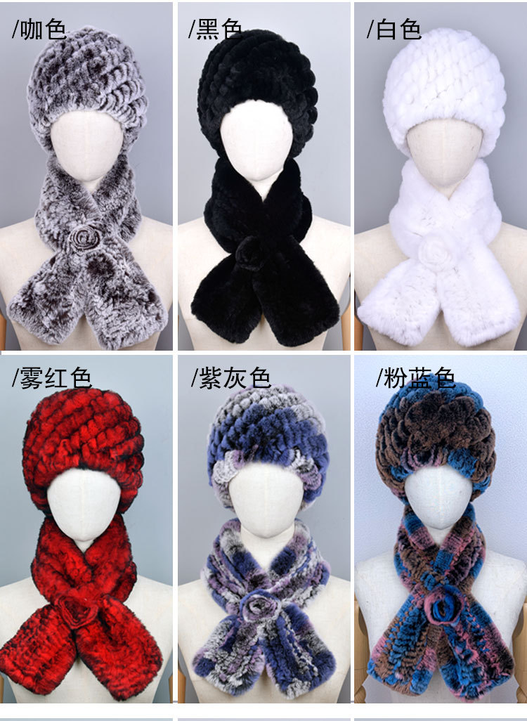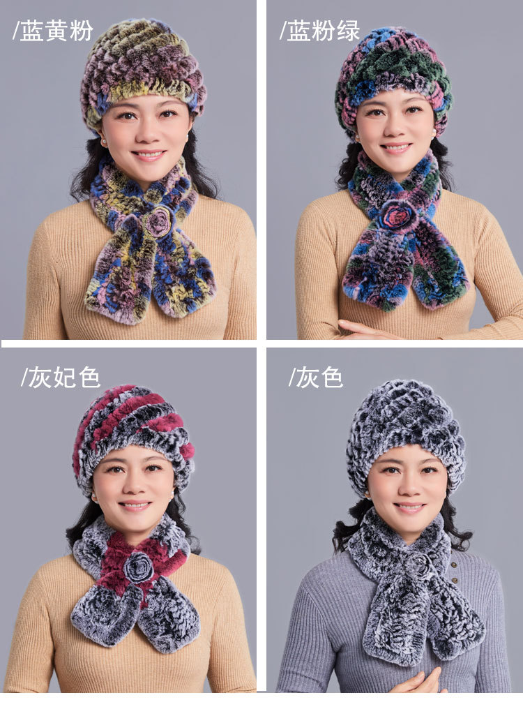 獭兔毛保暖百搭护耳帽围巾套装 GY-BLM