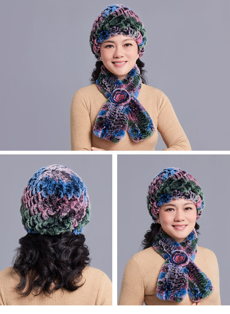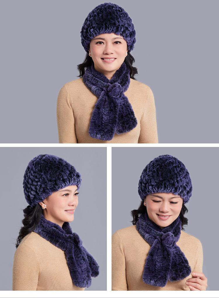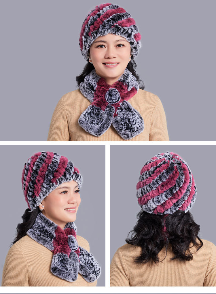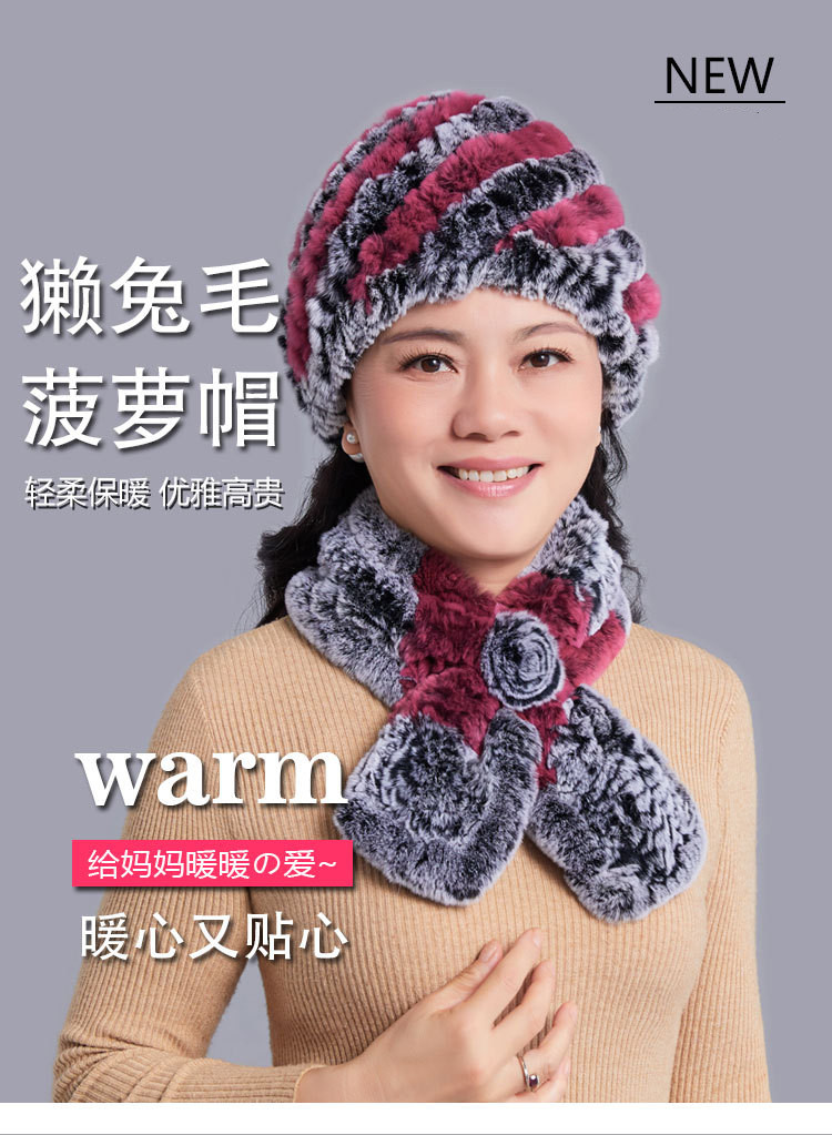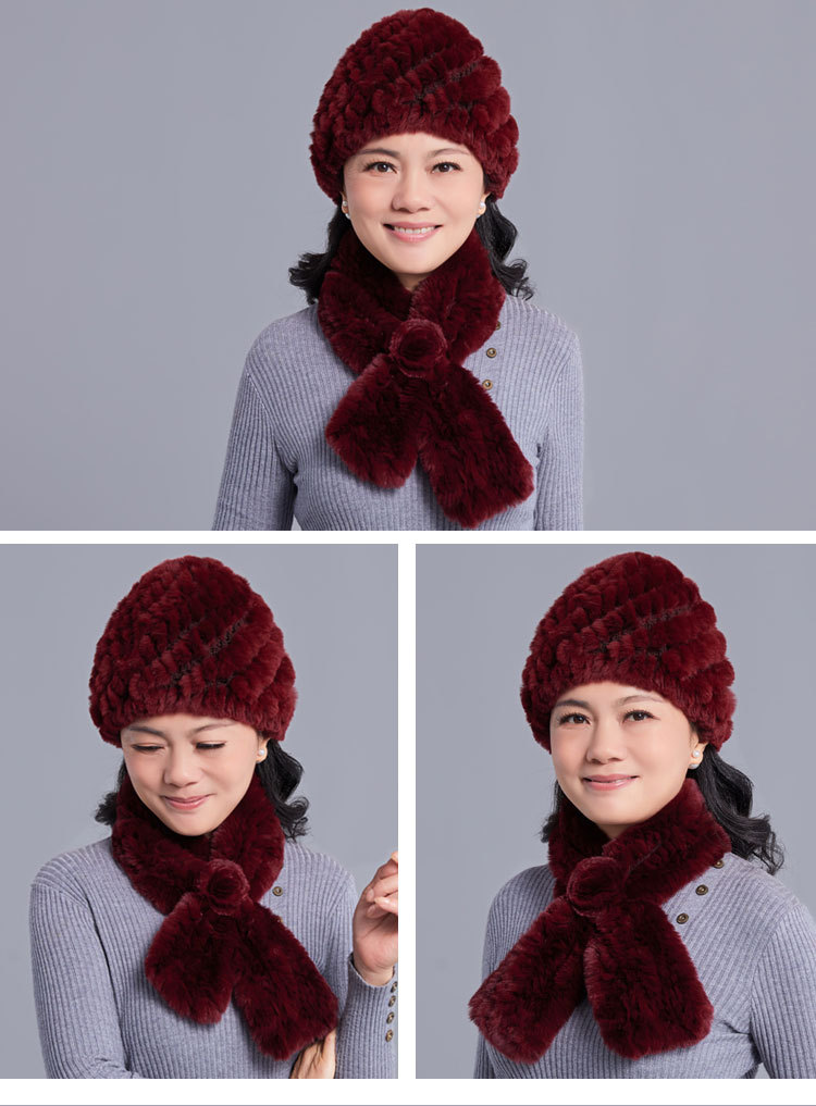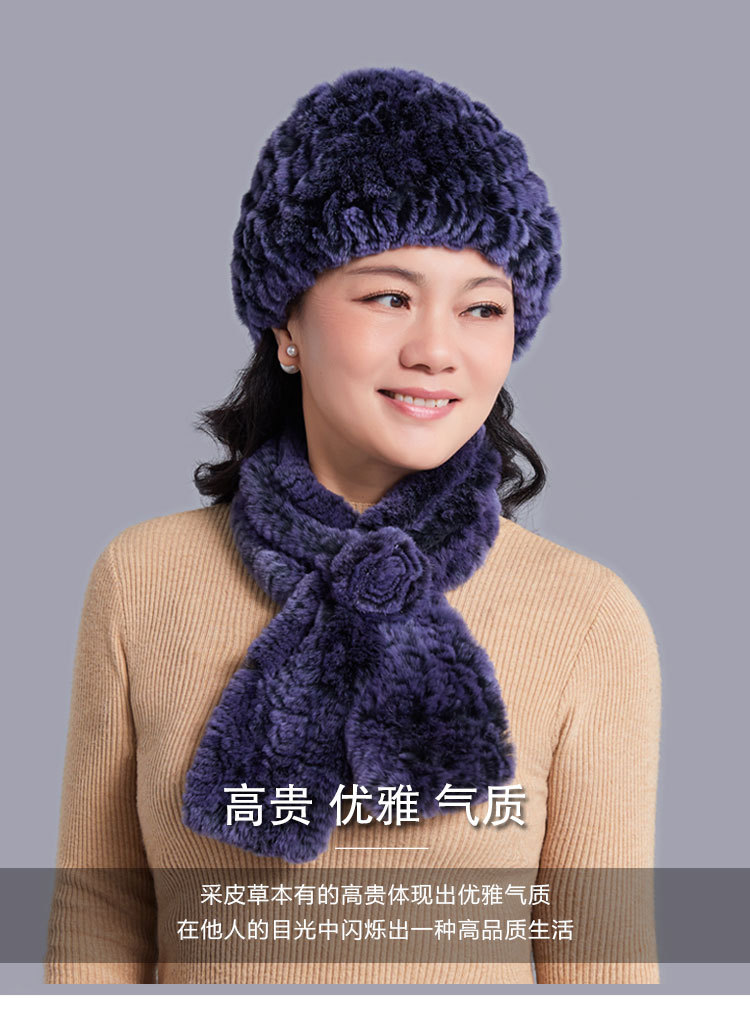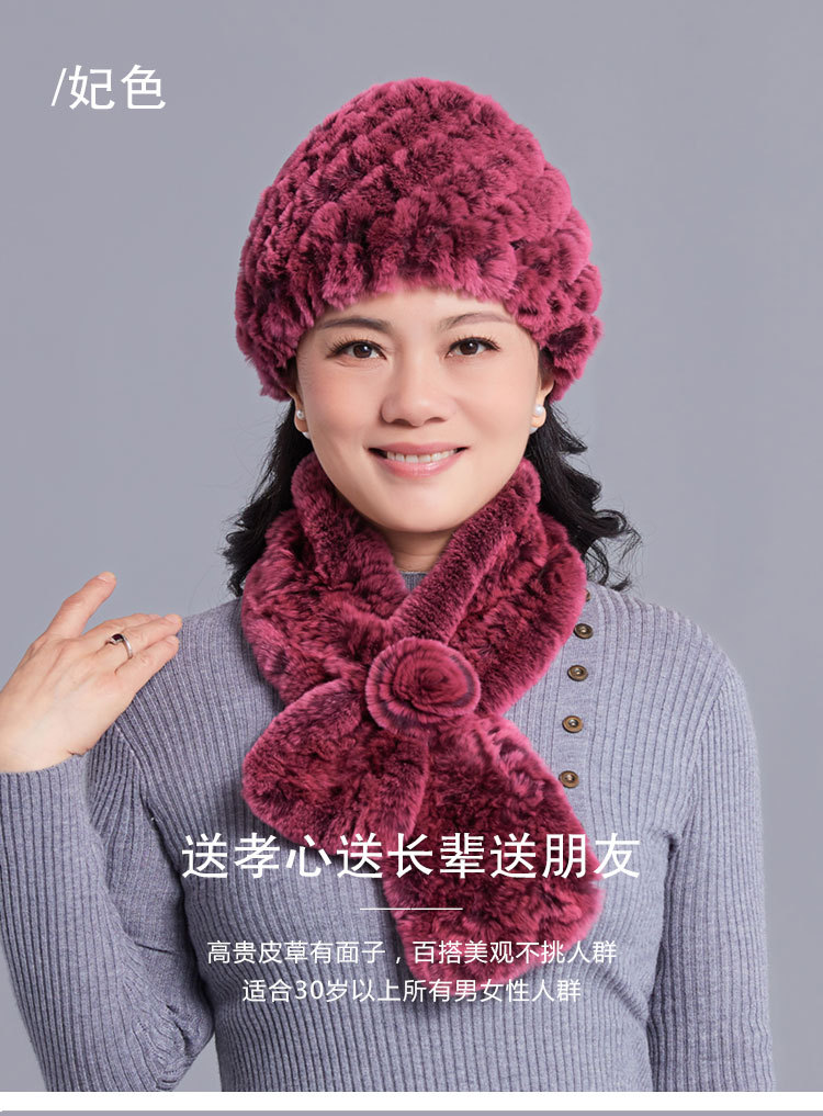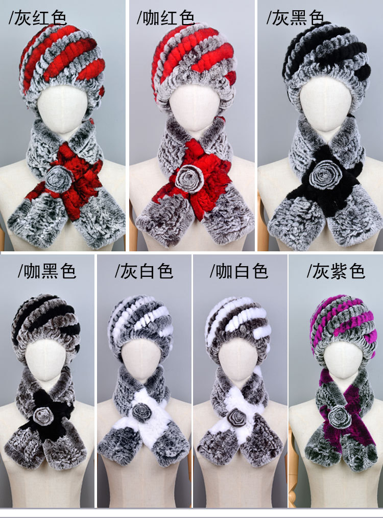 獭兔毛保暖百搭护耳帽围巾套装 GY-BLM