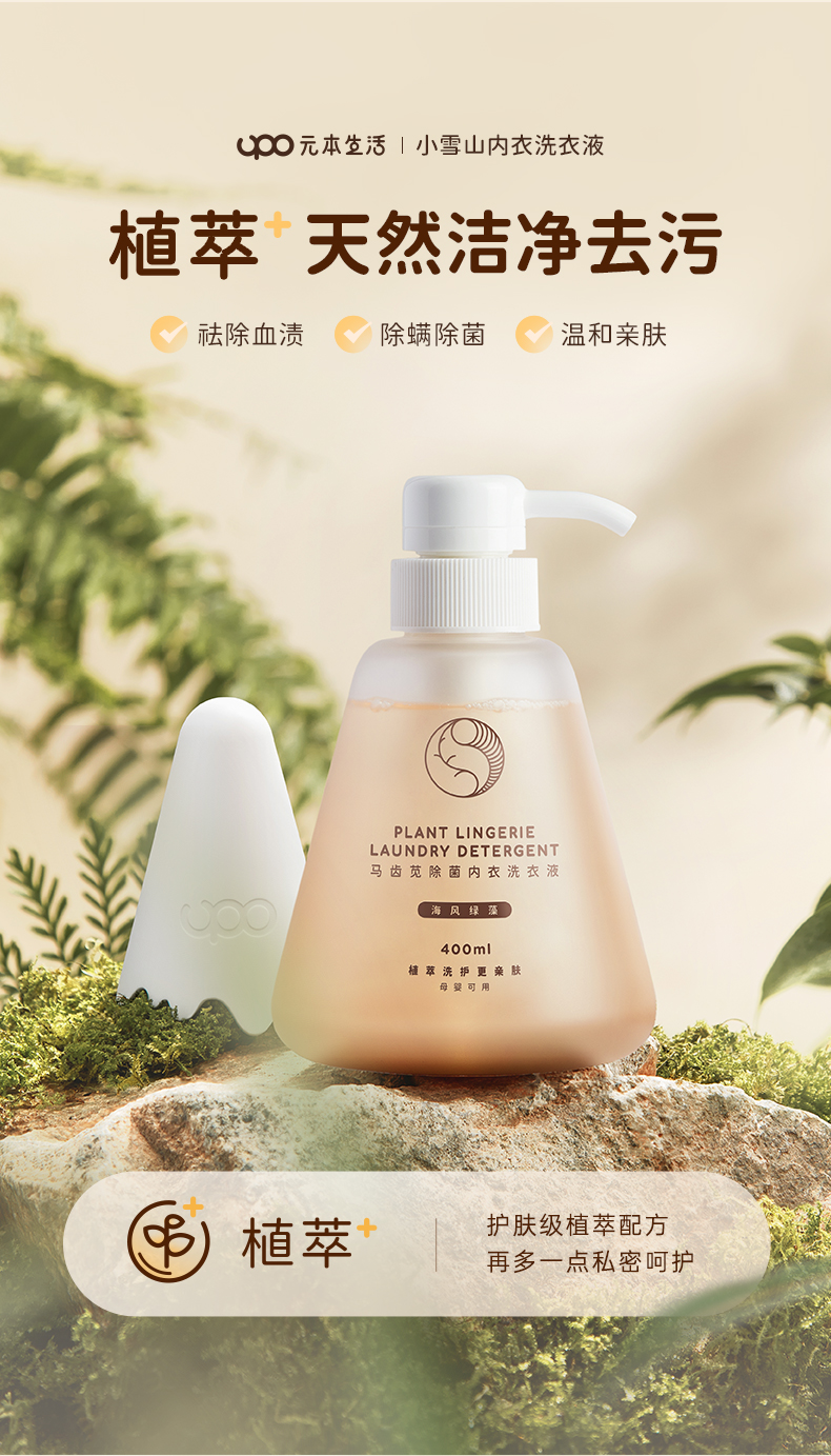 【送旅行装】元本生活马齿苋内衣洗衣液 400ml/瓶*4 植萃配方,萃取马齿苋精华,中性洗涤温和配方