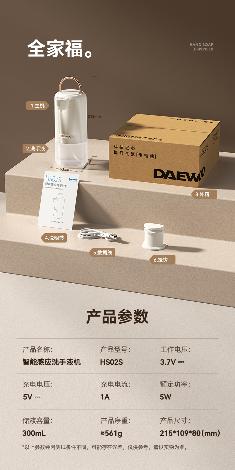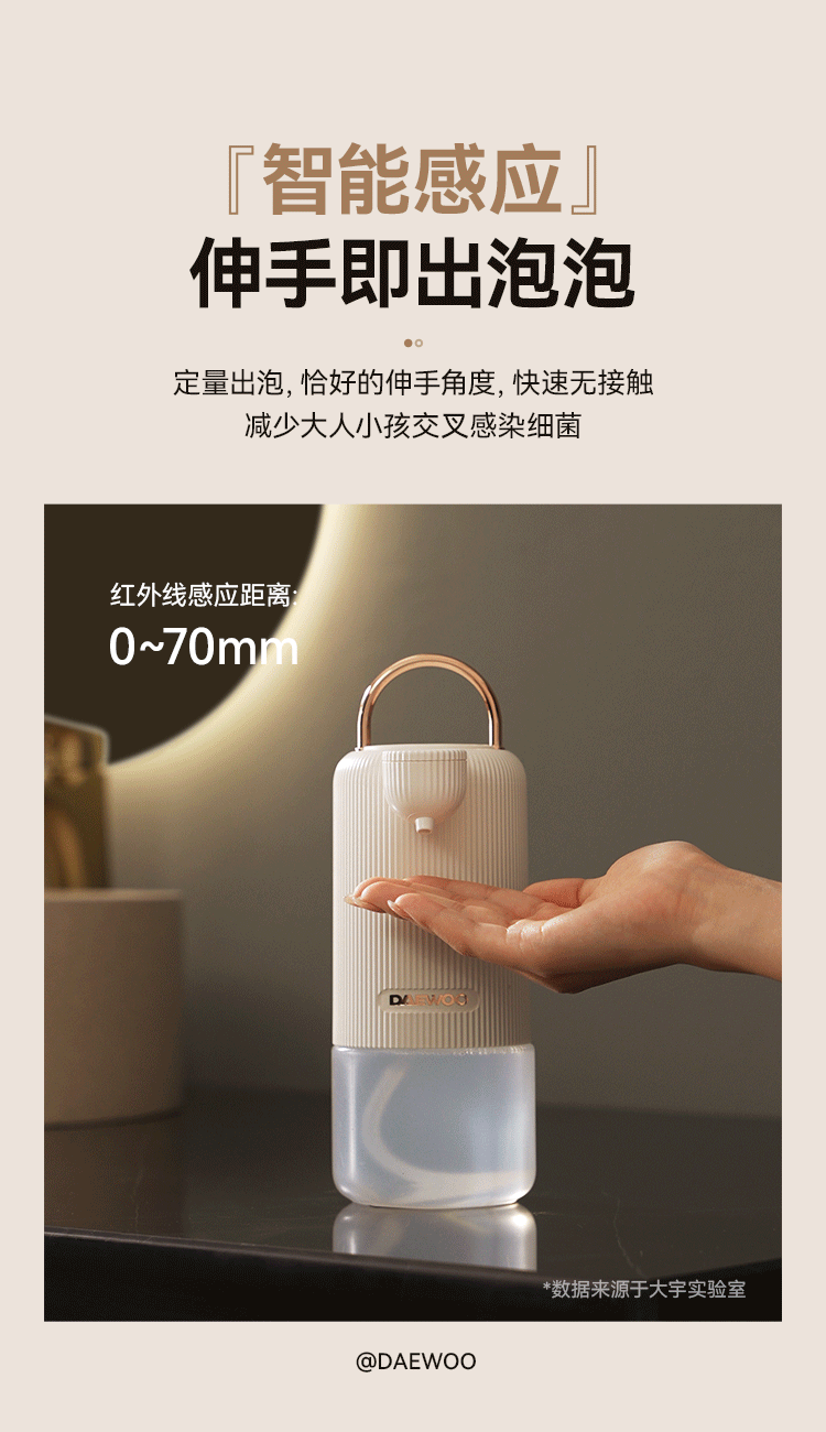 心选丨【官方直营】大宇洗手液机自动感应器台式挂壁两用智能电动泡沫机皂液抑菌家用