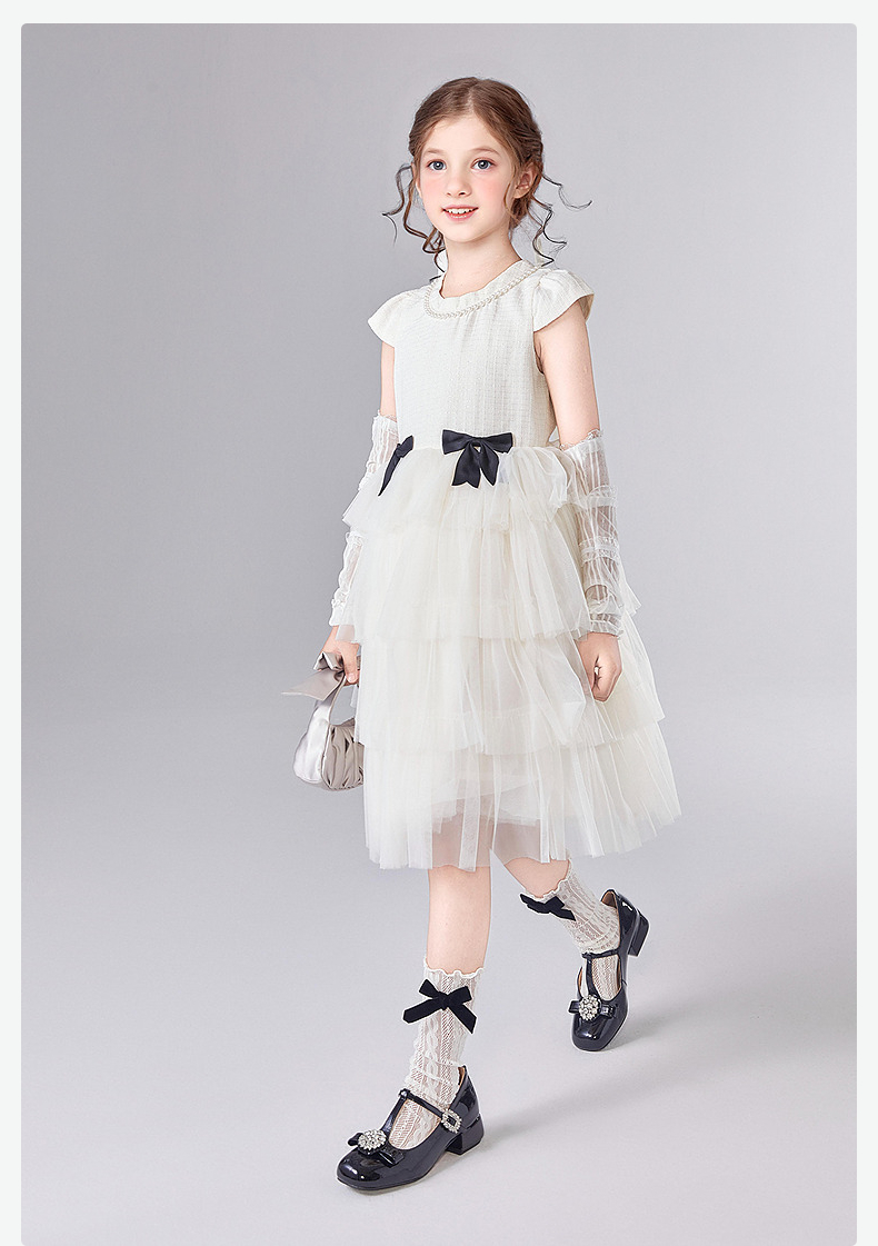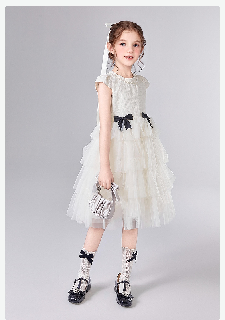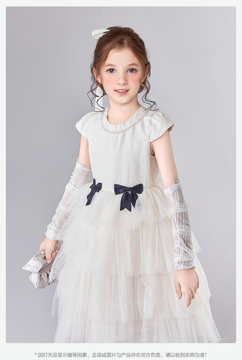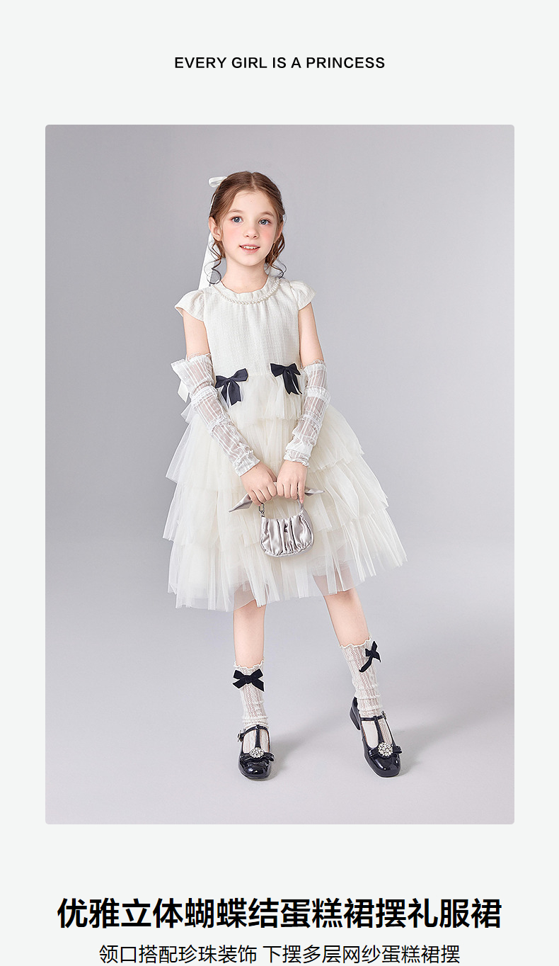 笛莎Deesha 童装女童连衣裙2025夏新款女童优雅立体蝴蝶结蛋糕裙摆礼服裙