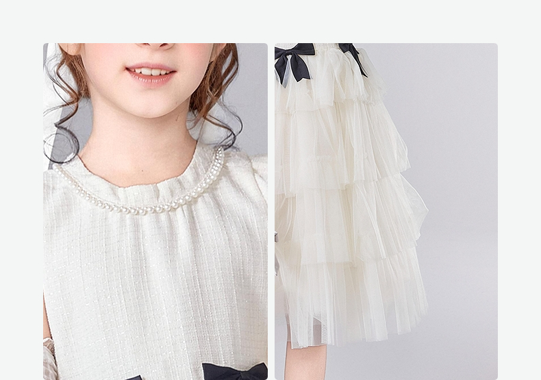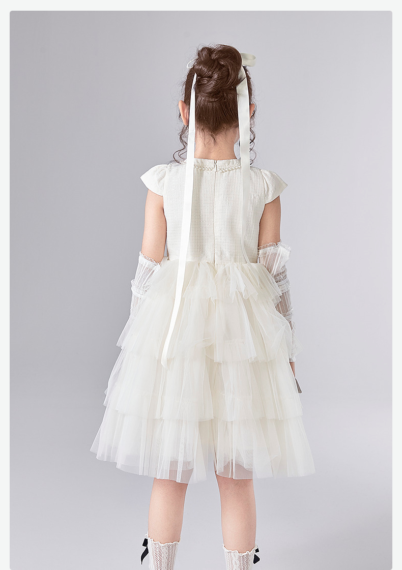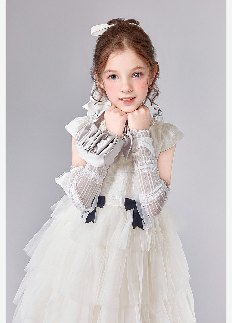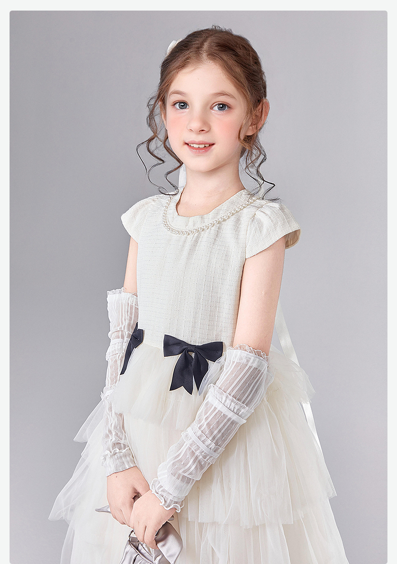 笛莎Deesha 童装女童连衣裙2025夏新款女童优雅立体蝴蝶结蛋糕裙摆礼服裙