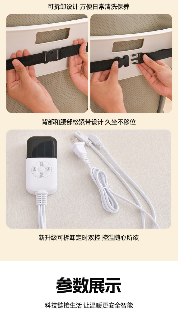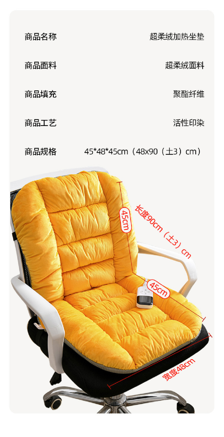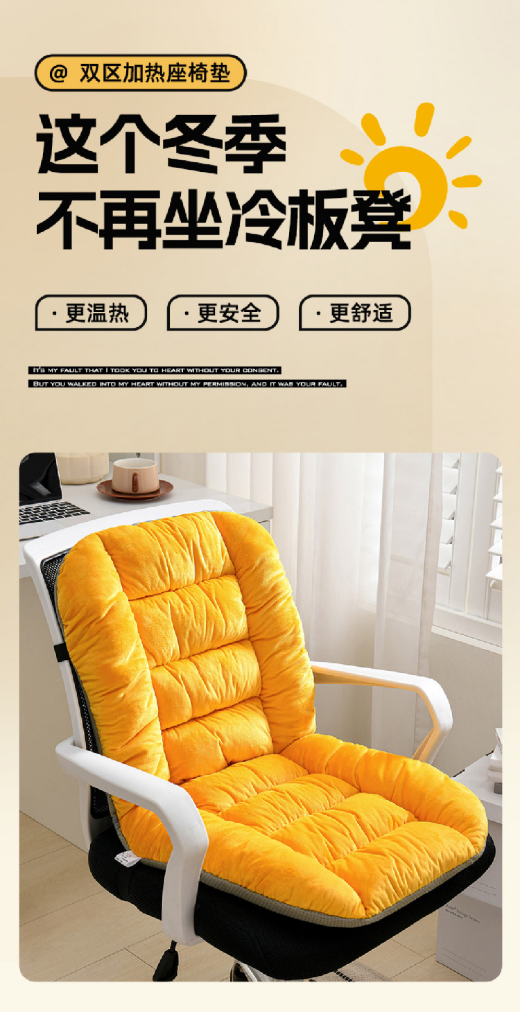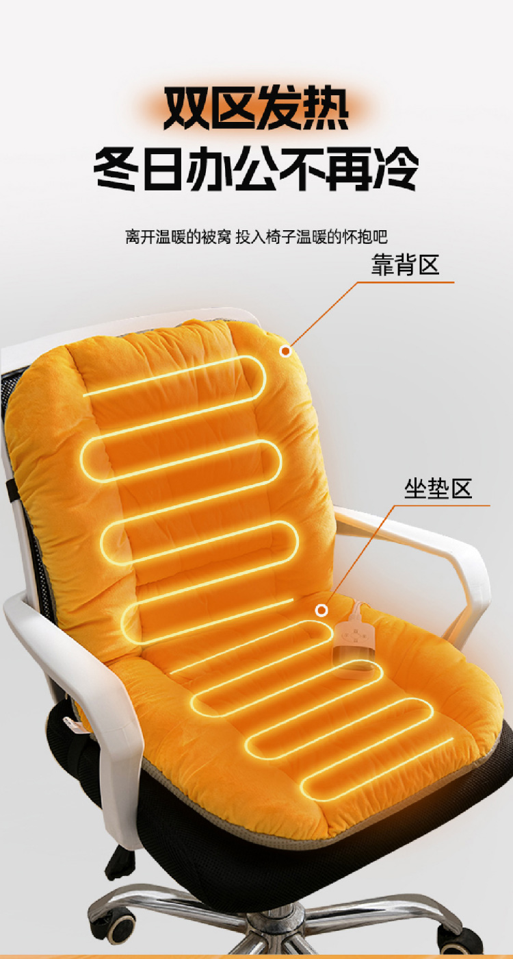 加热连体坐垫办公室椅子垫靠背一体发热座椅垫学生椅垫