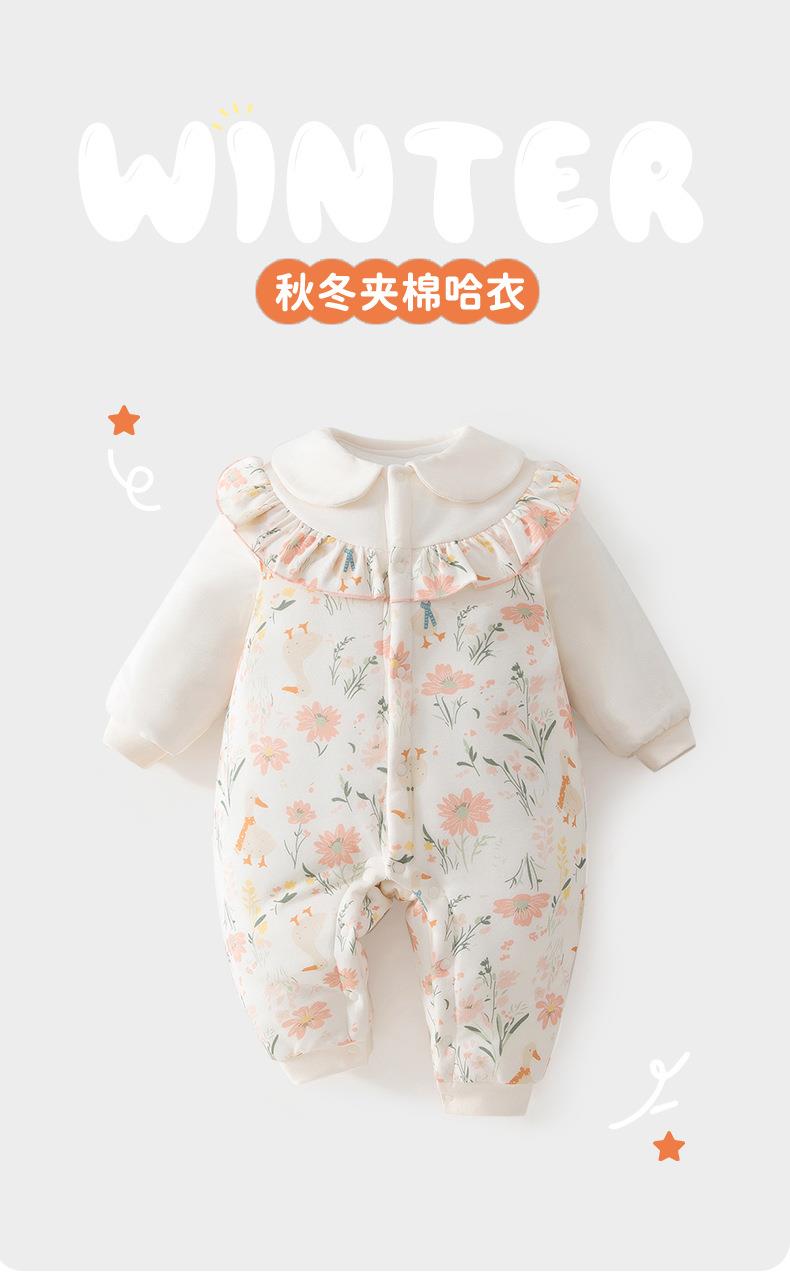 冬季夹棉加厚连体衣a类纯棉婴儿长爬长袖衣服安阳童装女宝棉服