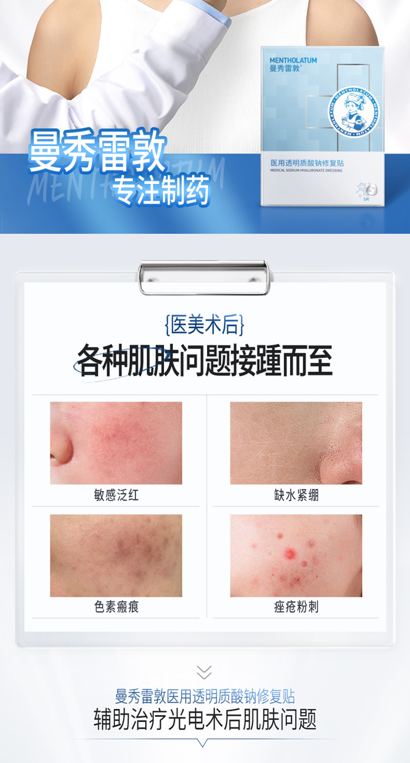 曼秀雷敦医用透明质酸钠修复贴5片/盒(小蓝膜)【二械】(效期到26年1月)