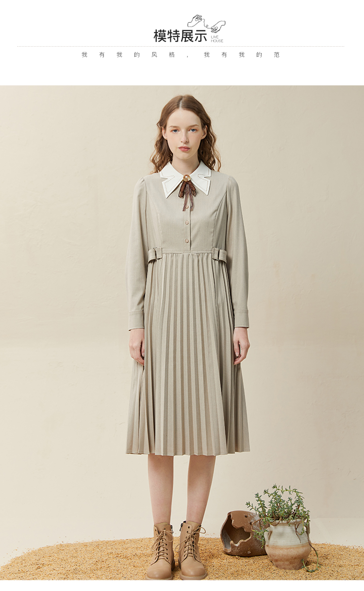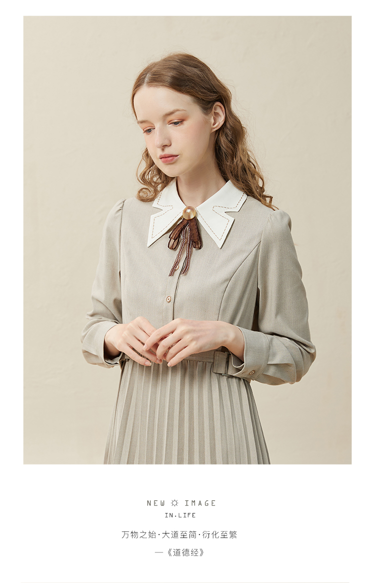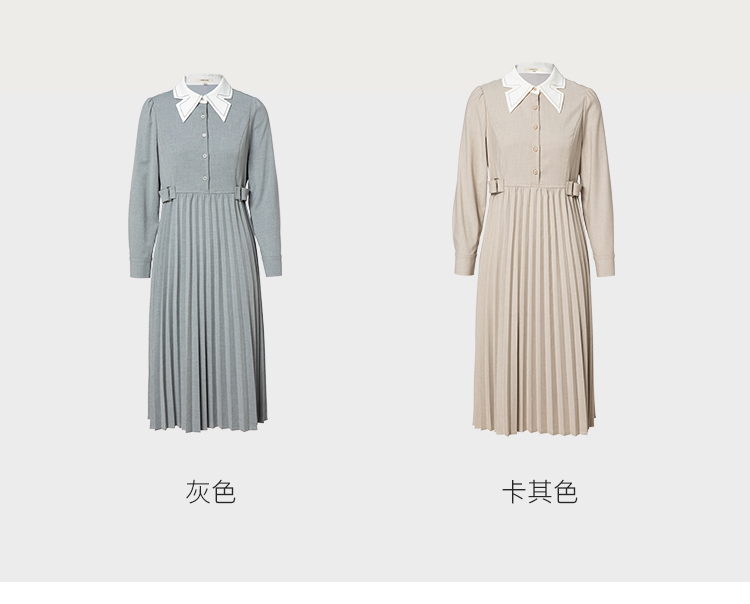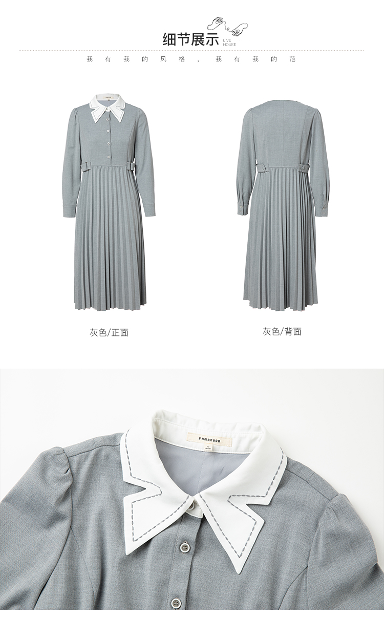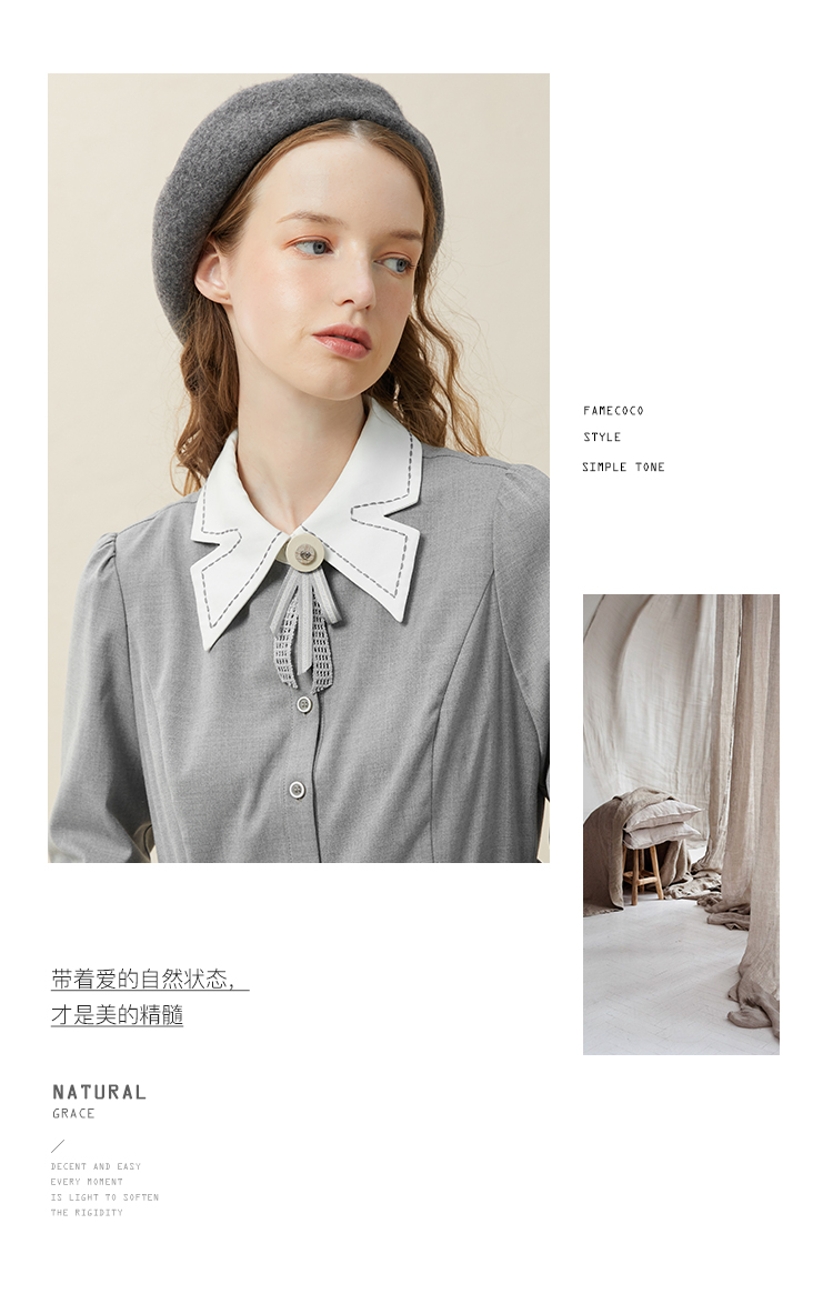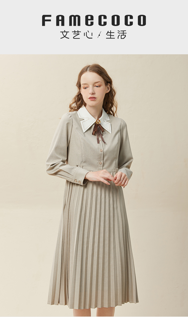 famecoco范可儿高腰显瘦蝴蝶领连衣裙女士高端品牌衬衫裙F228FA014