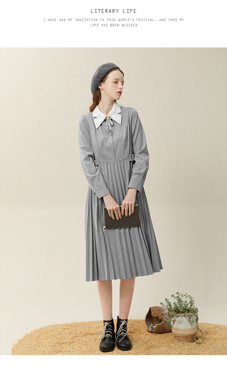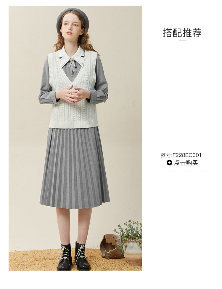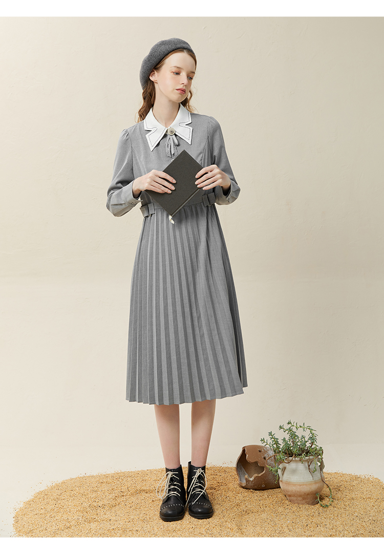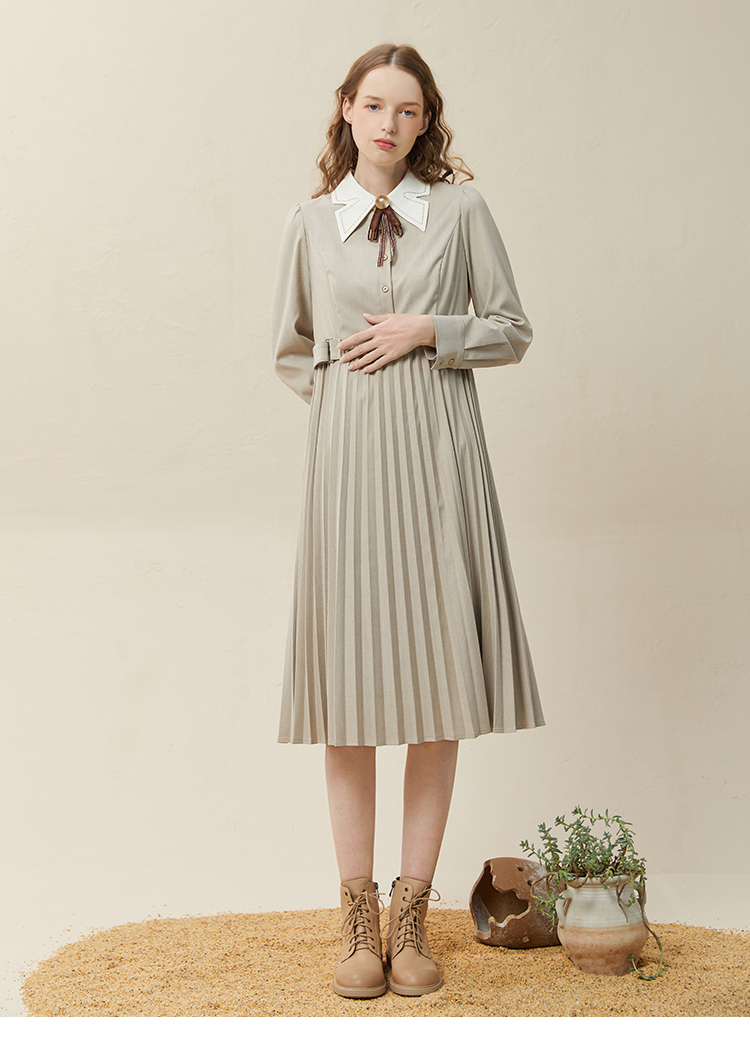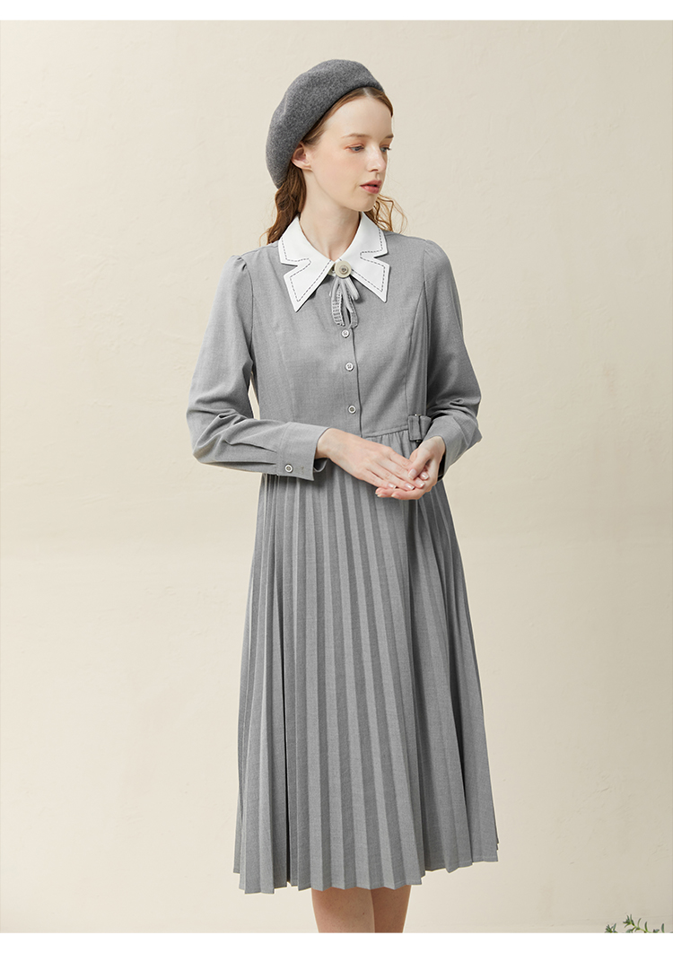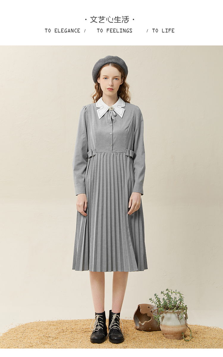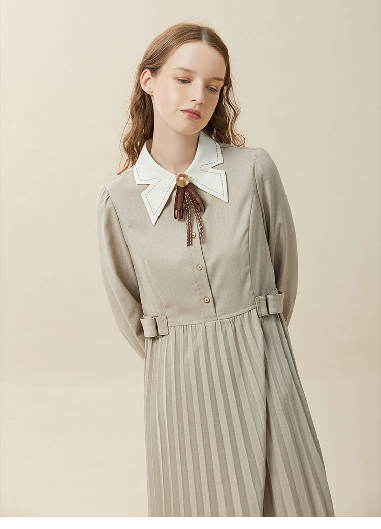famecoco范可儿高腰显瘦蝴蝶领连衣裙女士高端品牌衬衫裙F228FA014