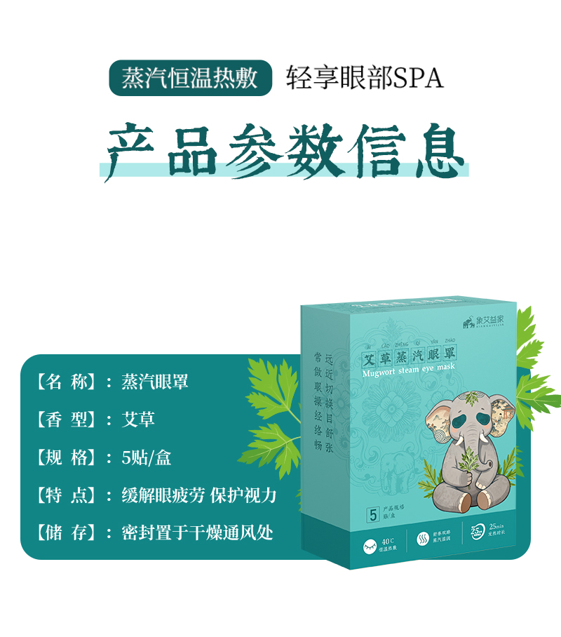 艾草蒸汽眼罩5贴/盒 热敷睡眠艾灸眼罩正品