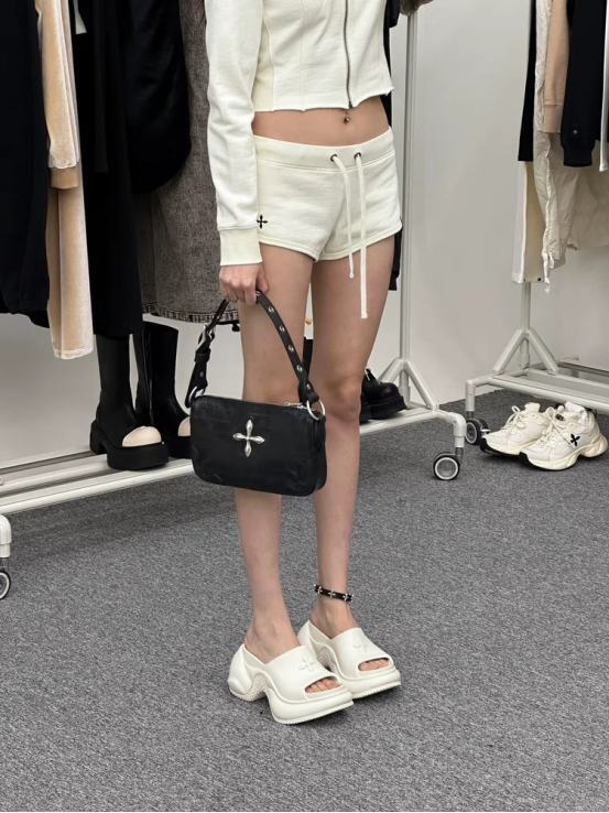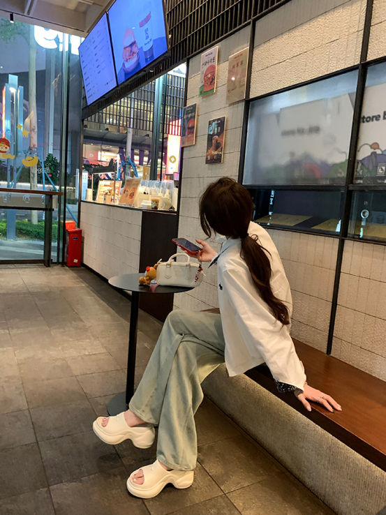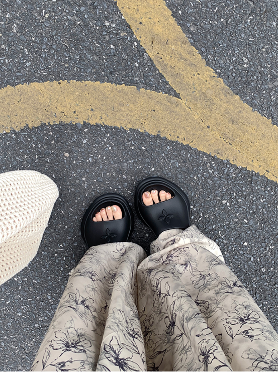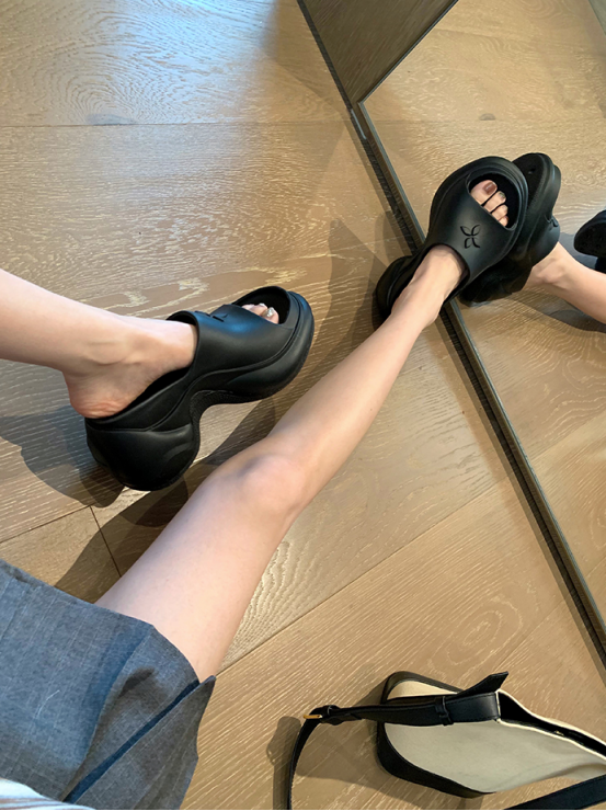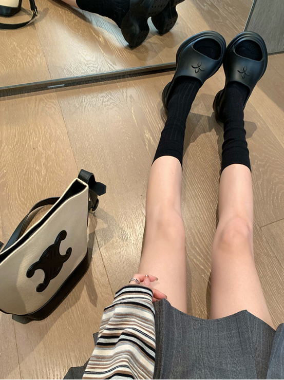 🔻黑色无脑入就对了,超好搭 拖地裤就是要配这种大厚底拖鞋 穿起来才有慵懒的感觉 叠个短袜也是简直时髦惨~