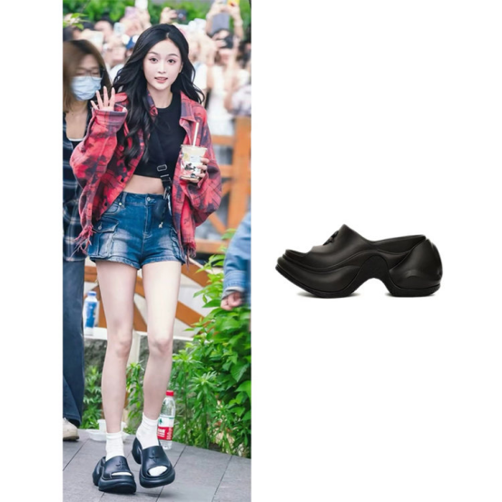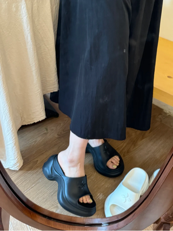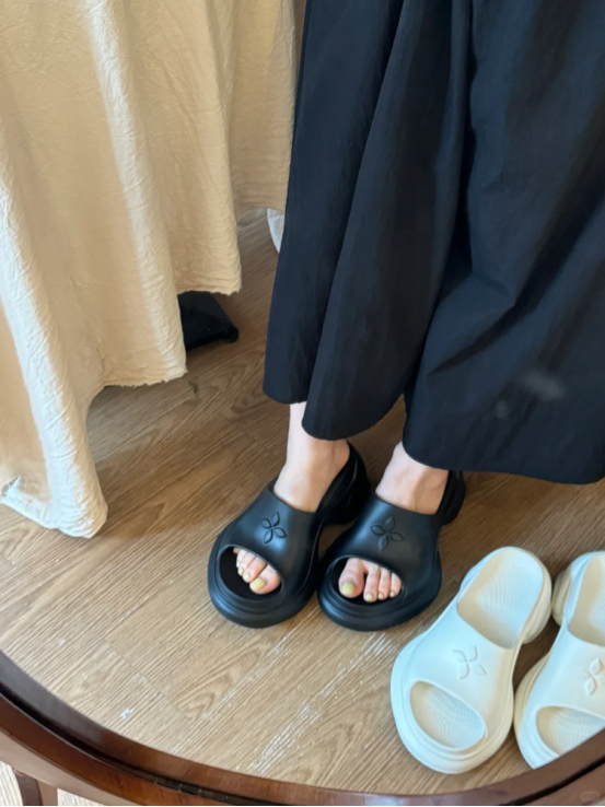 这款辣妹拖贼上镜🔸搭配起来可亮眼了 y版鞋型会有点宽 我做的更适合大部分脚型哦,放心冲❗❗ 📌足弓设计符合人体工学 更加贴合脚底的同时,分散脚步压力不累脚 9cm厚底谁穿都是大长腿 以后拍照都不用P啦 整鞋EVA材质的含金量谁懂 超J轻便,暴走无负担💨💨💨 这款上脚会比放着更好看 特别是夏天穿长裤短裤 🔻身材比例会显得巨好