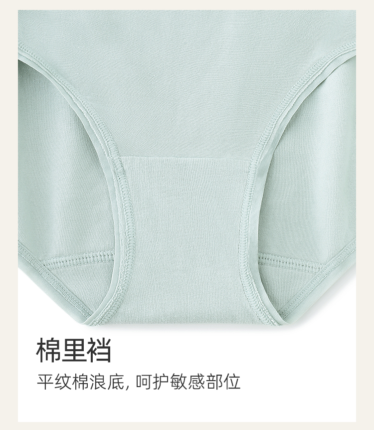 HSIA遐夏季薄款女士中腰平角裤三条装50S精梳棉舒适高弹包臀内裤女