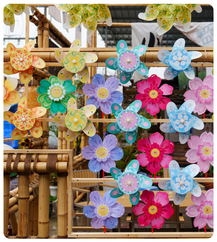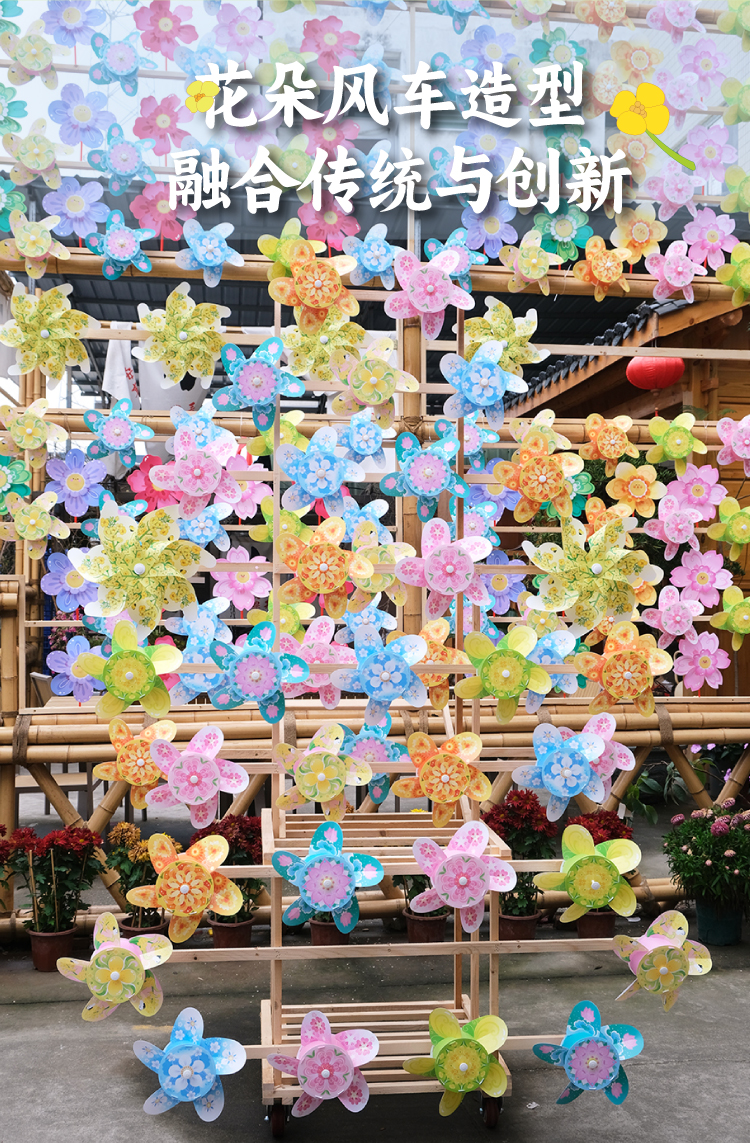 户外春天非遗花朵风车手工diy儿童制作材料装饰幼儿园旋转玩具