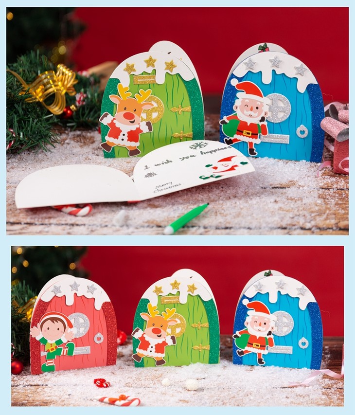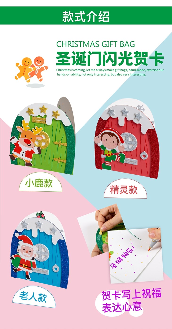 圣诞门闪光贺卡圣诞老人推门贺卡幼儿园手工DIY礼物贺卡美可DIY