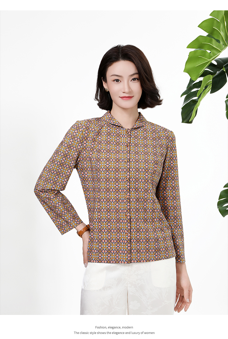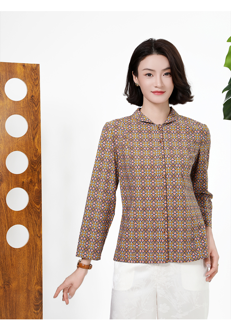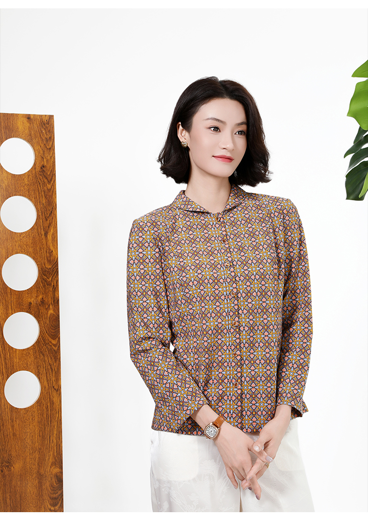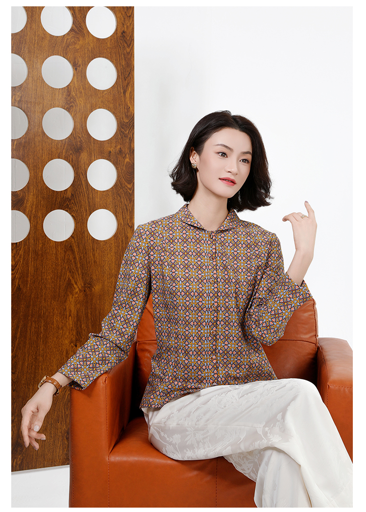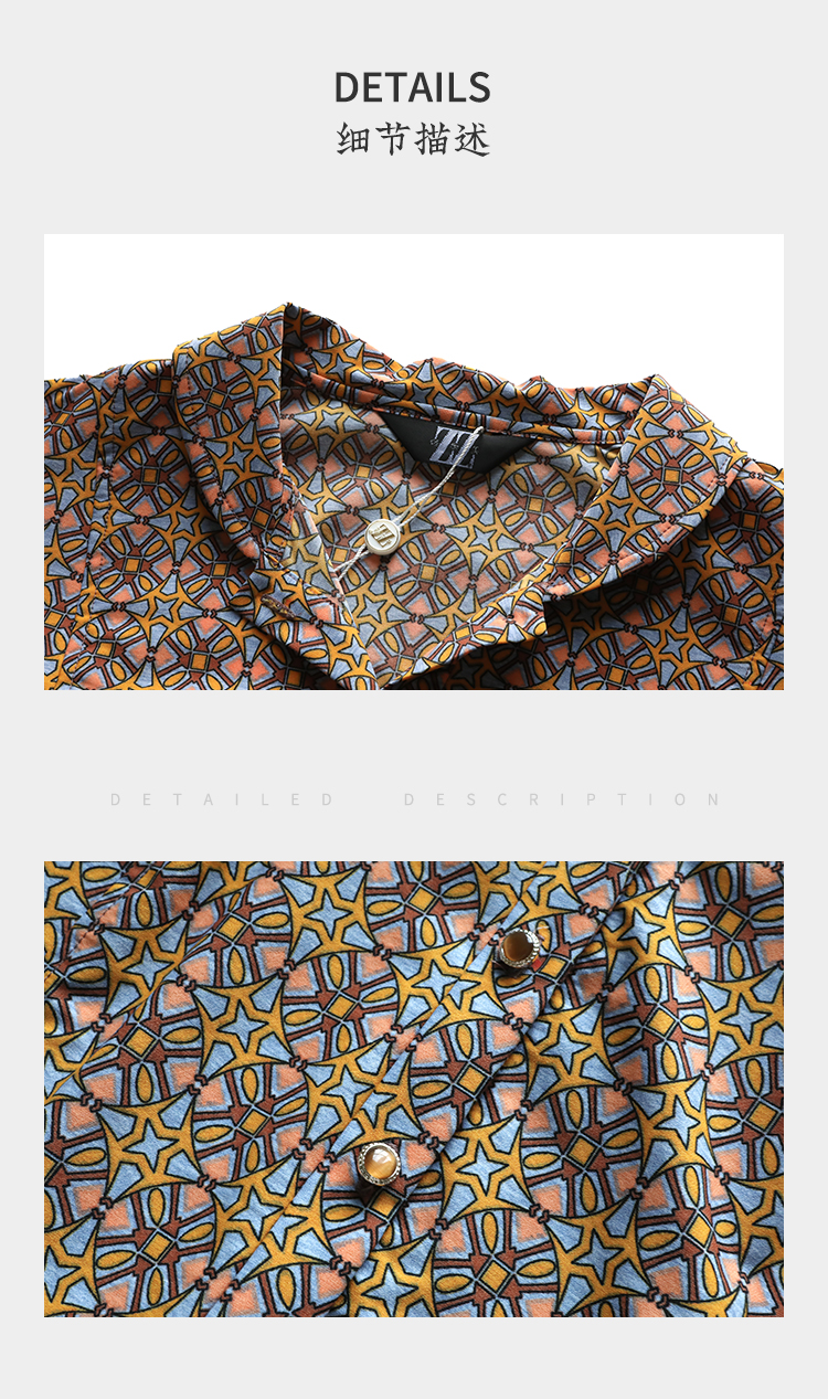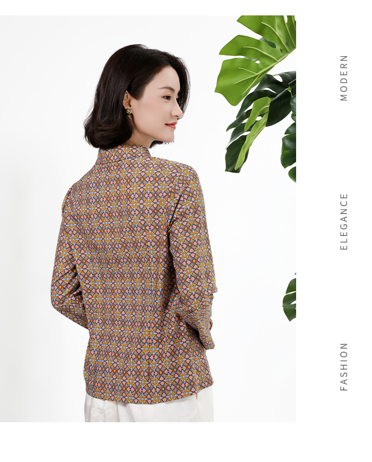 佐尔美复古民族风几何印花翻领长袖针织工艺衫女M51CC04