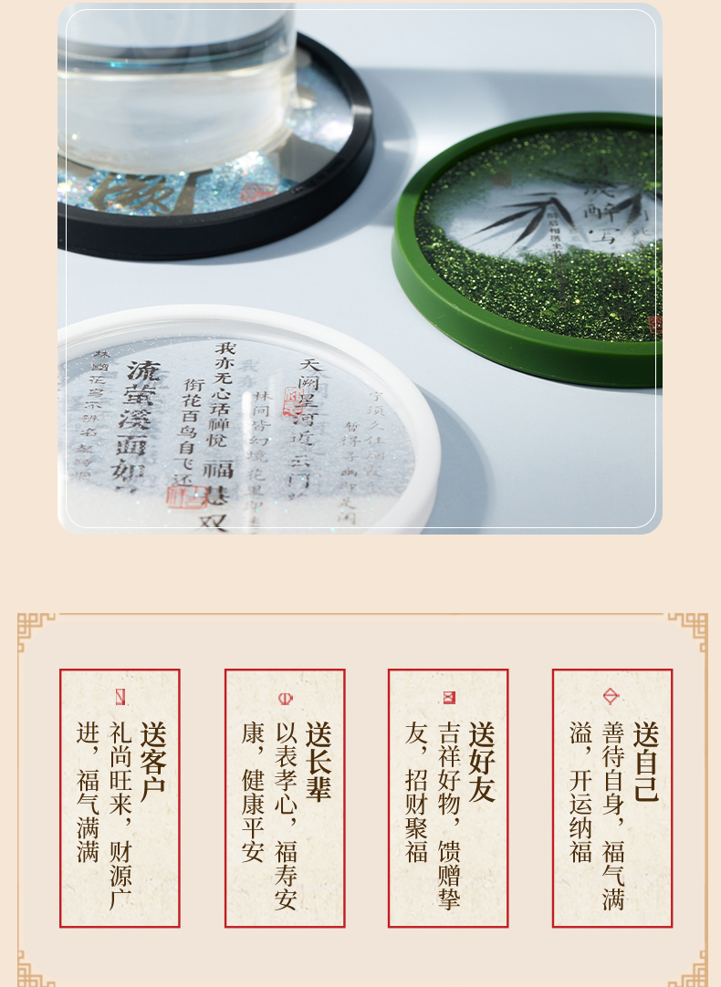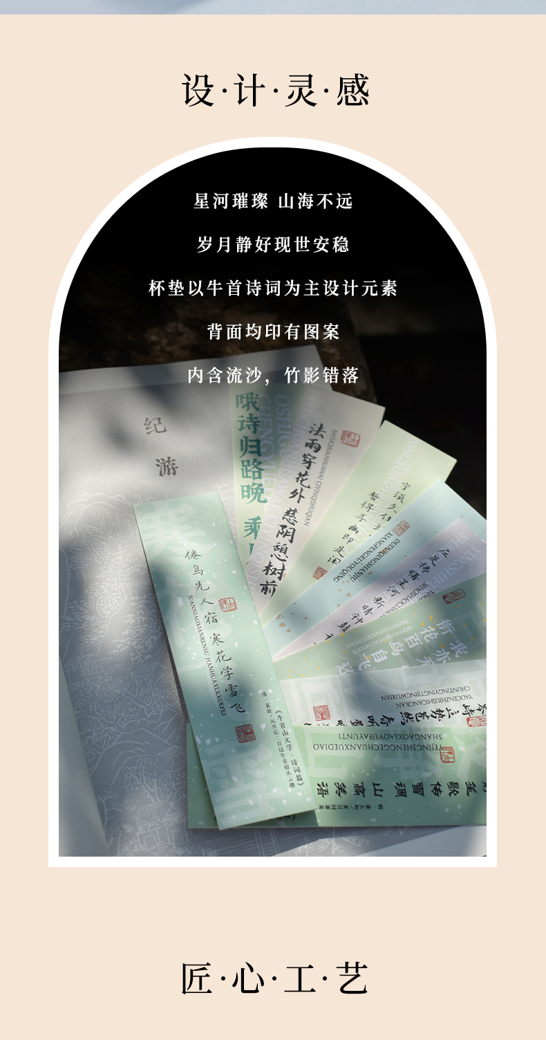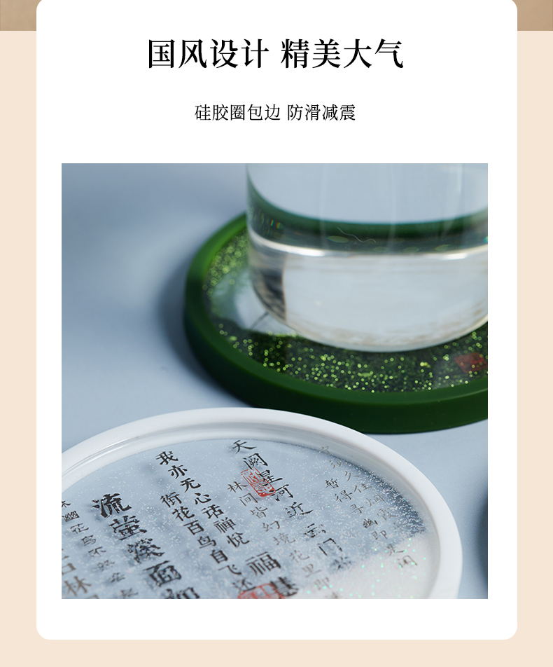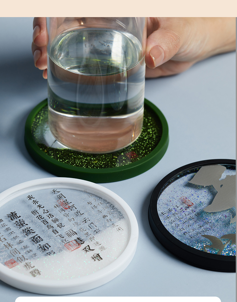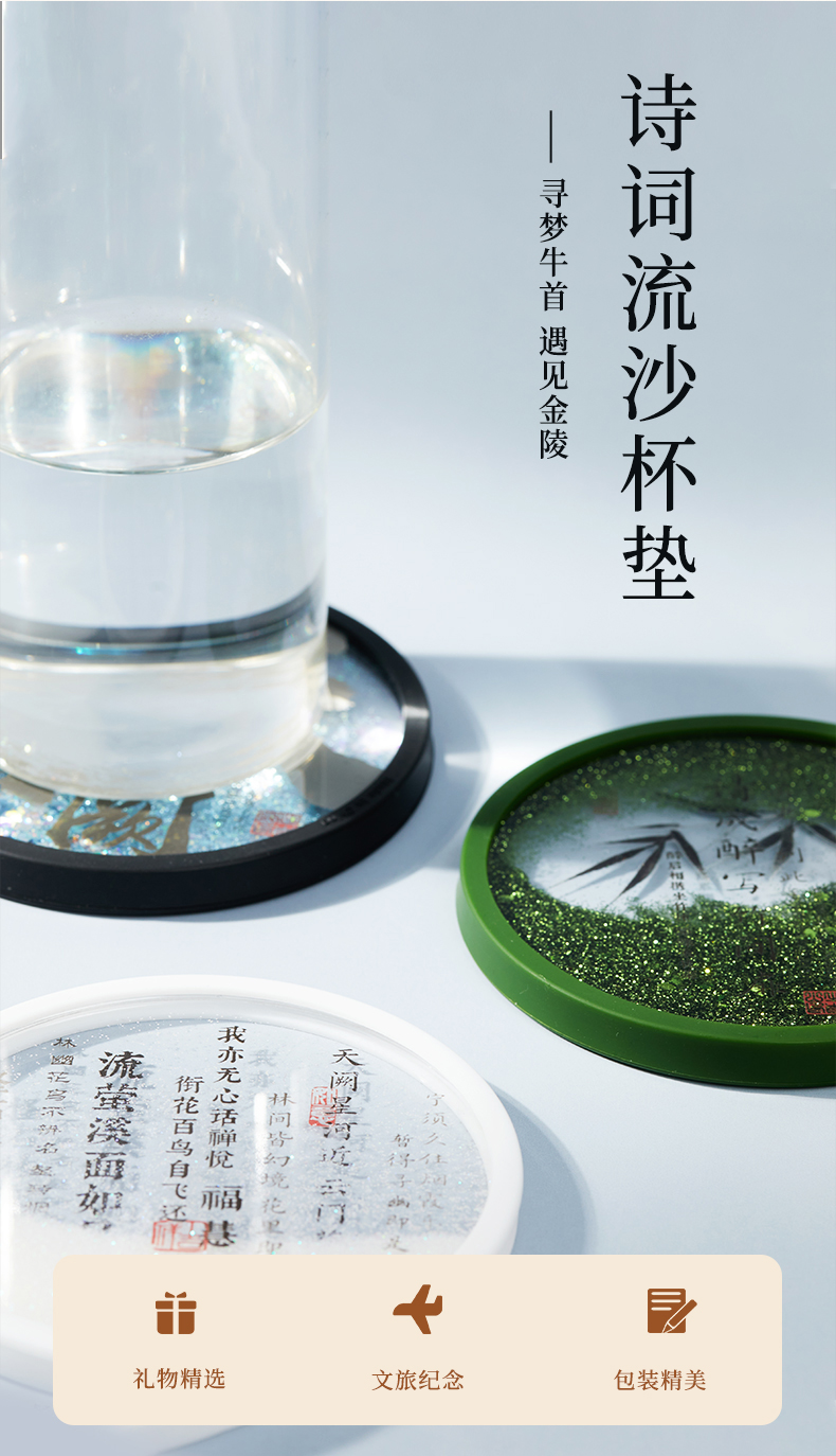牛首山文创诗词流沙杯垫南京文创礼物创意杯垫隔热垫创意流沙杯垫