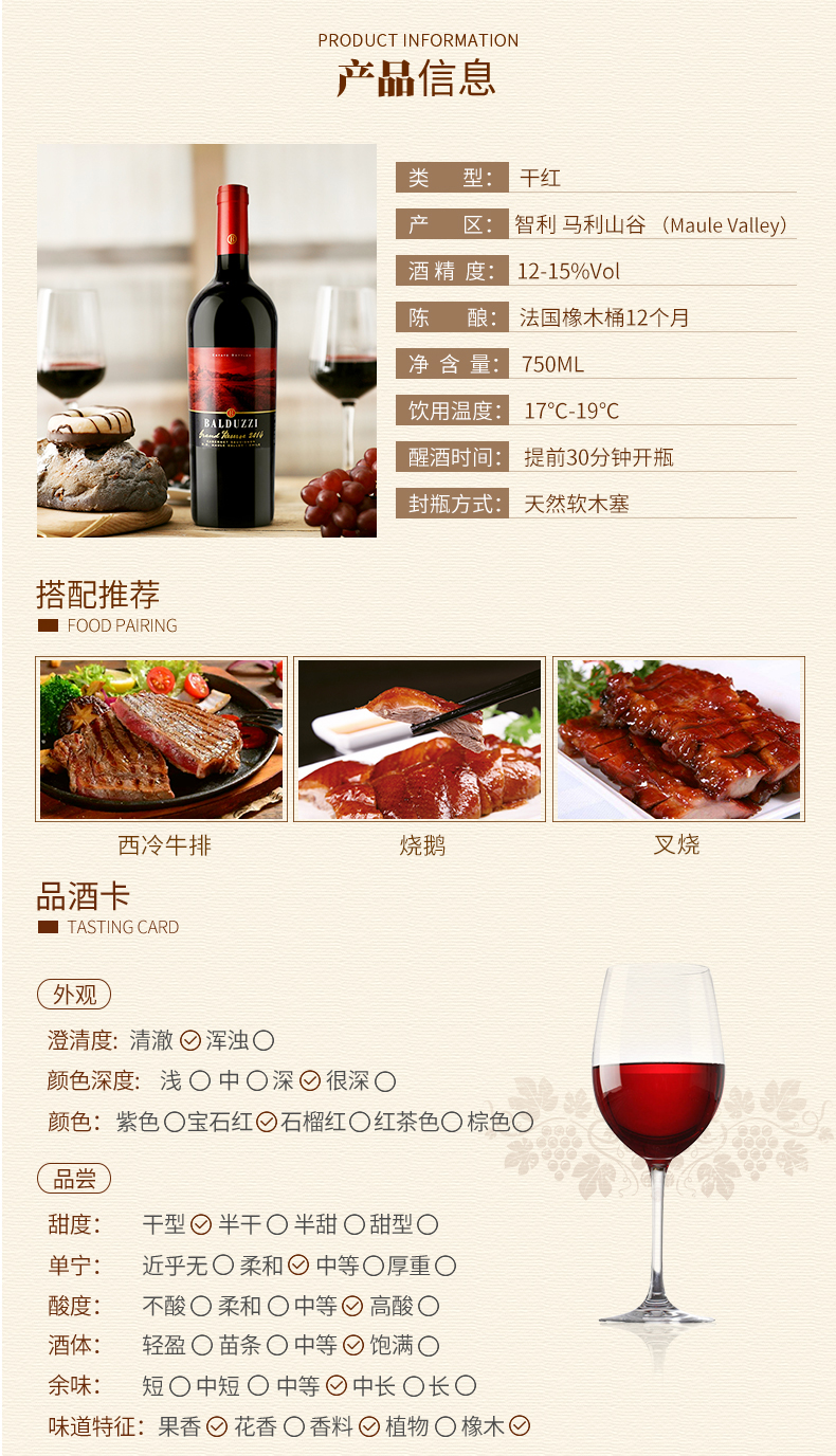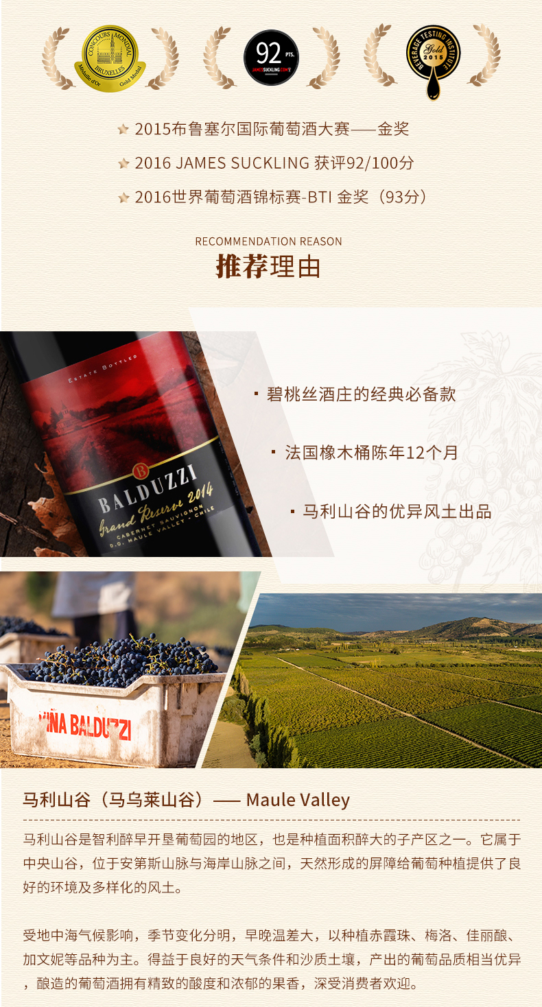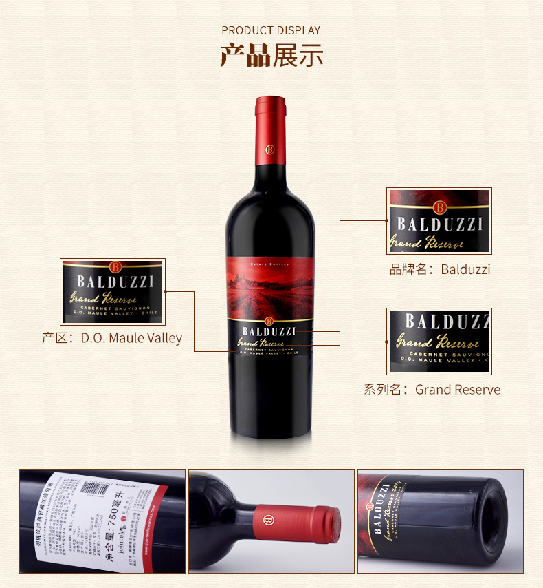 碧桃丝经典窖藏红葡萄酒 Balduzzi Grand Reserve 750ml