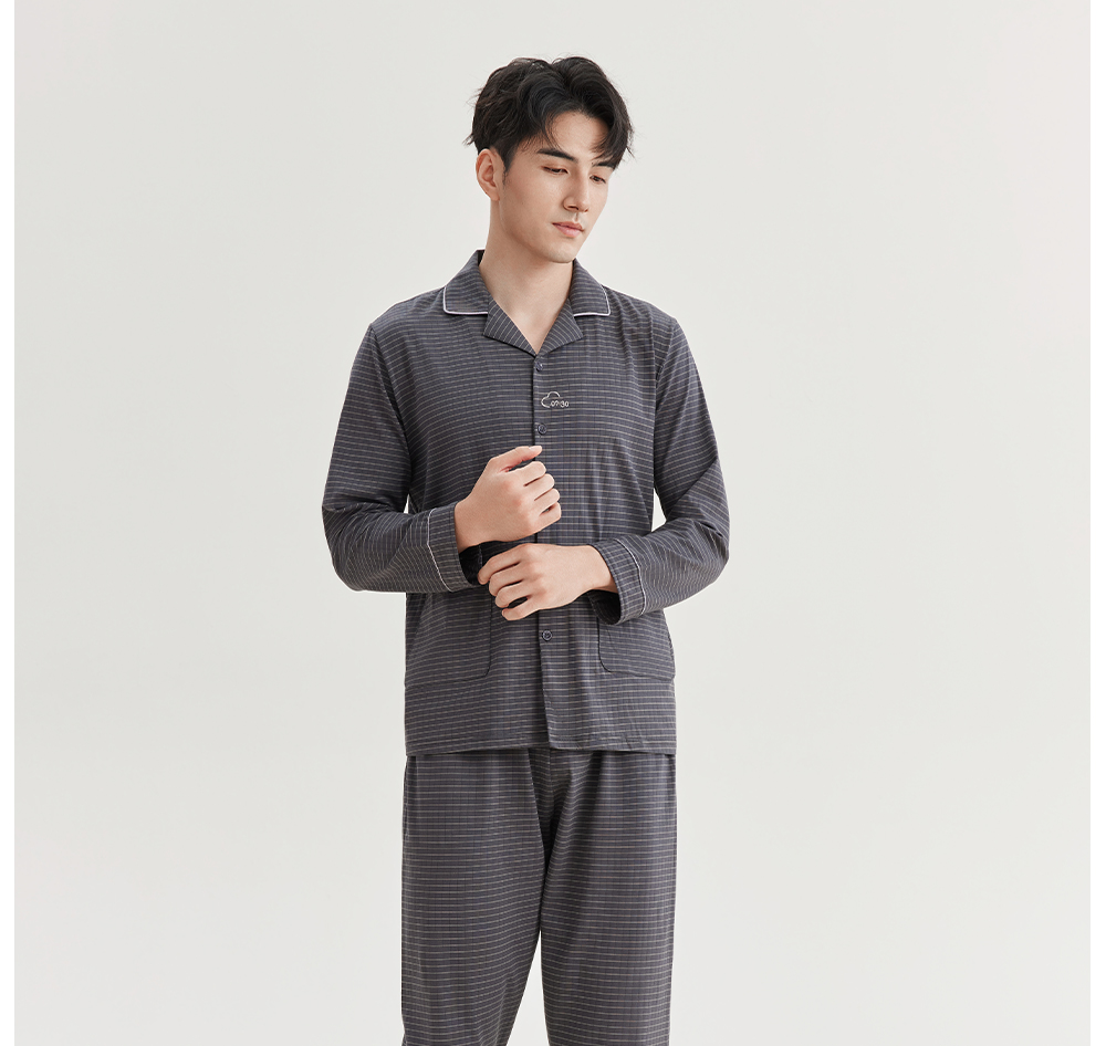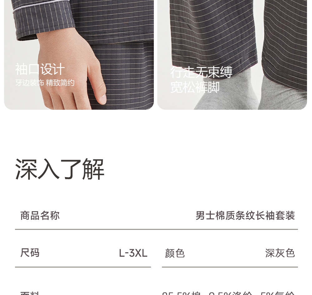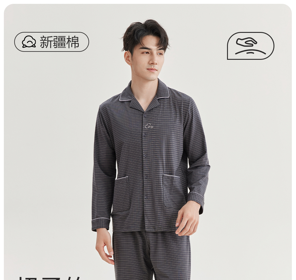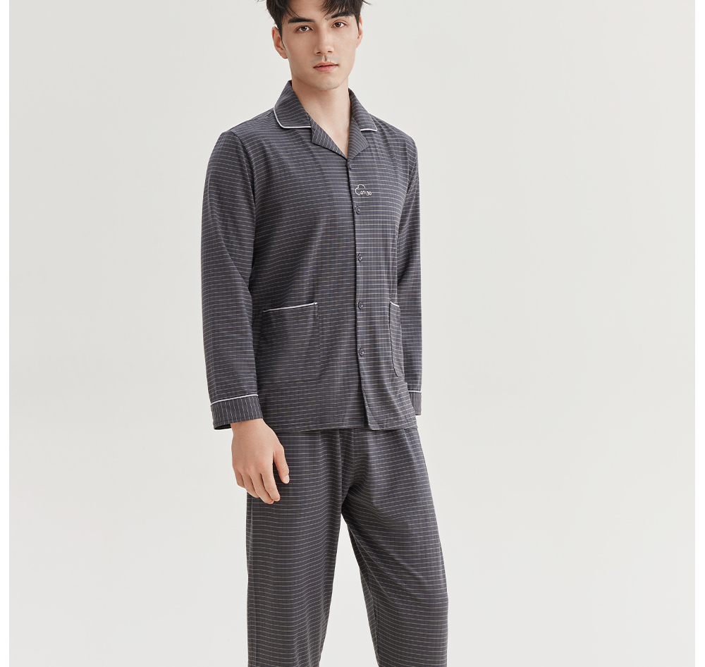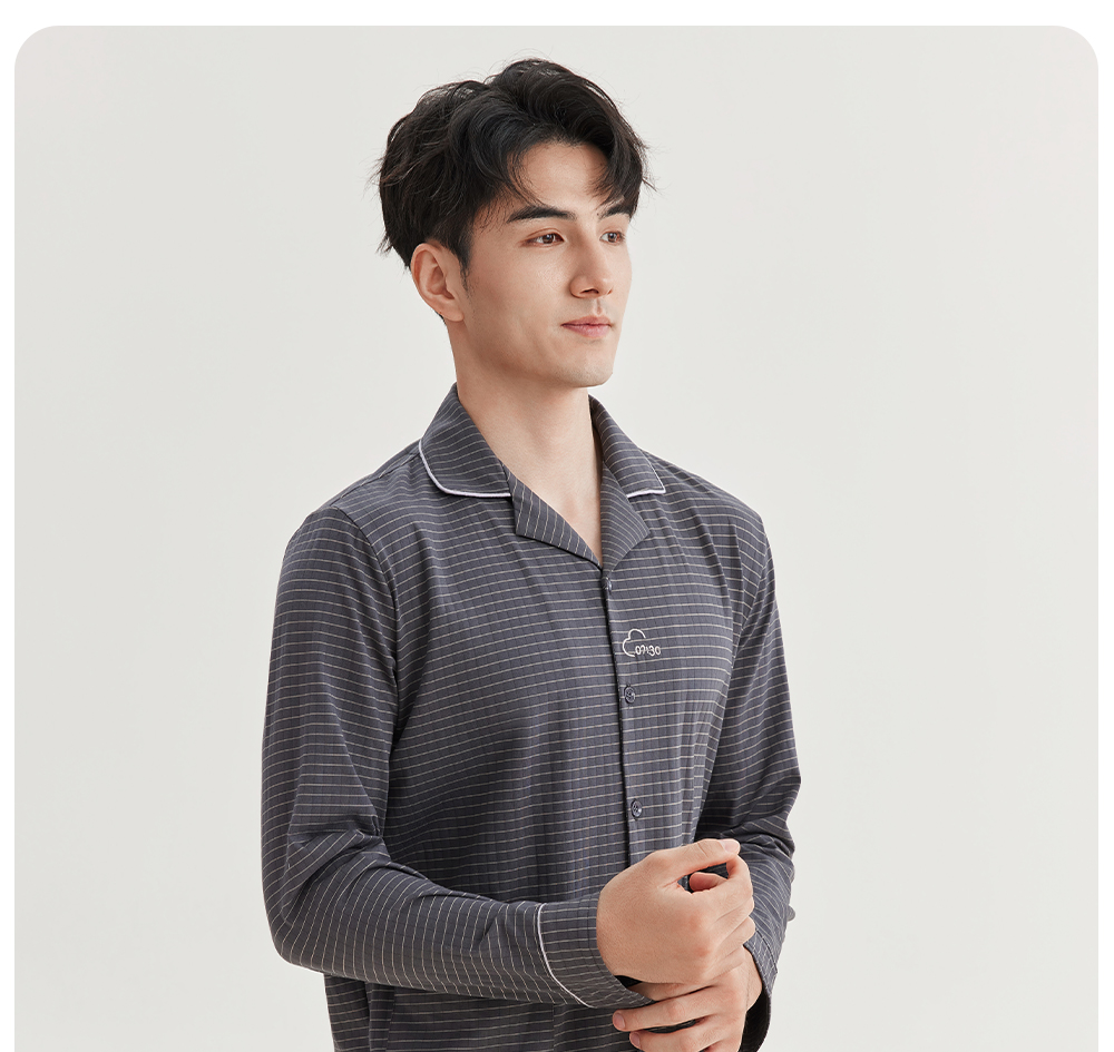 美季美优睡衣女秋季2024新款男士棉质条纹套装长袖长裤家居服