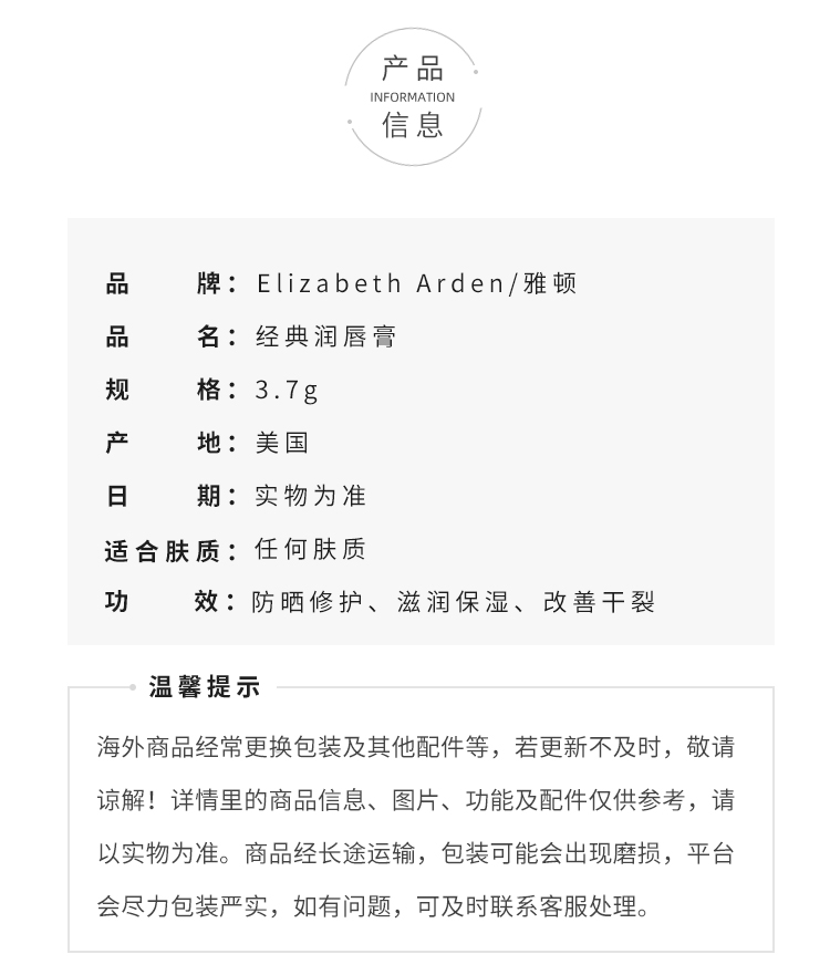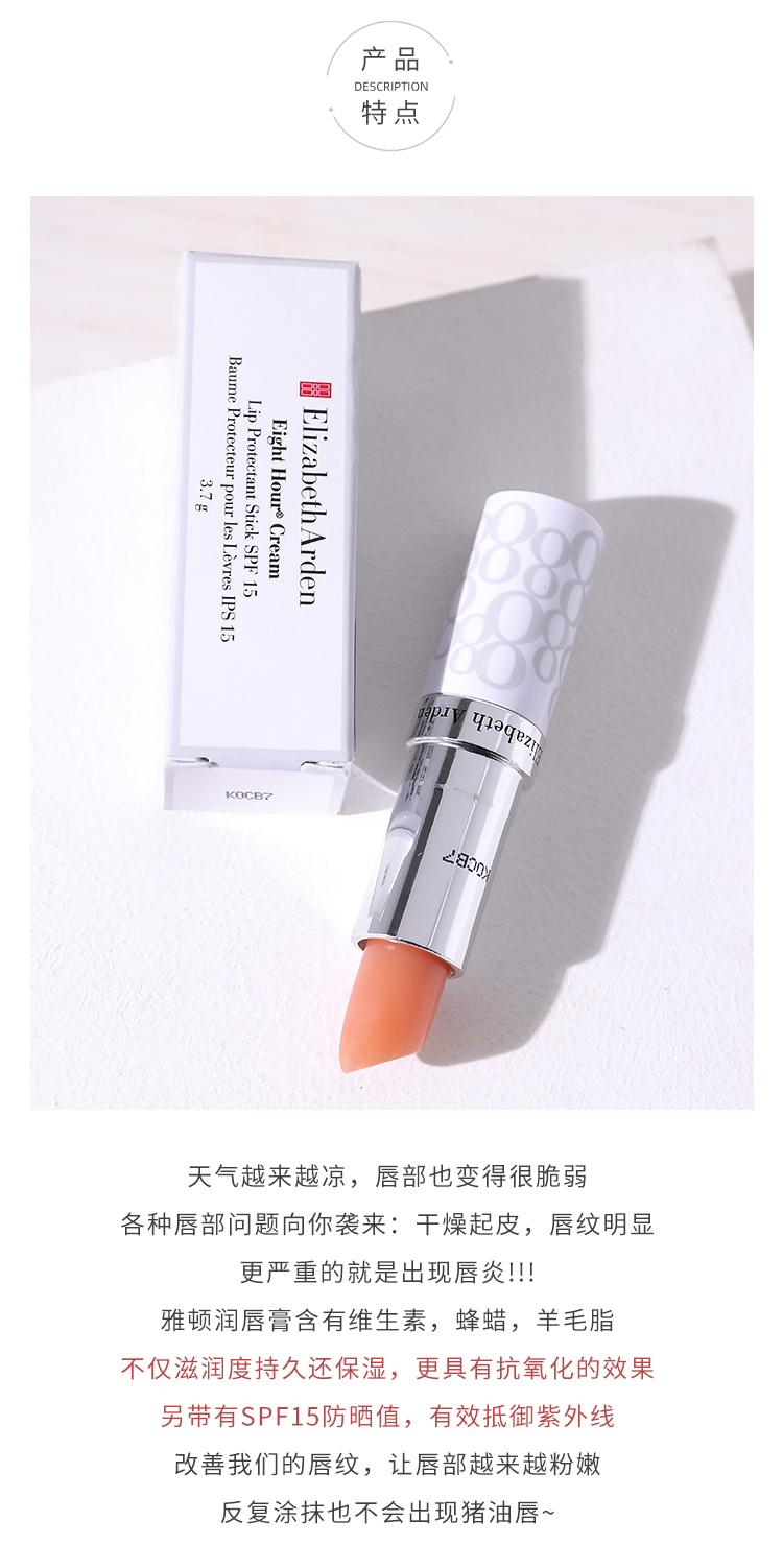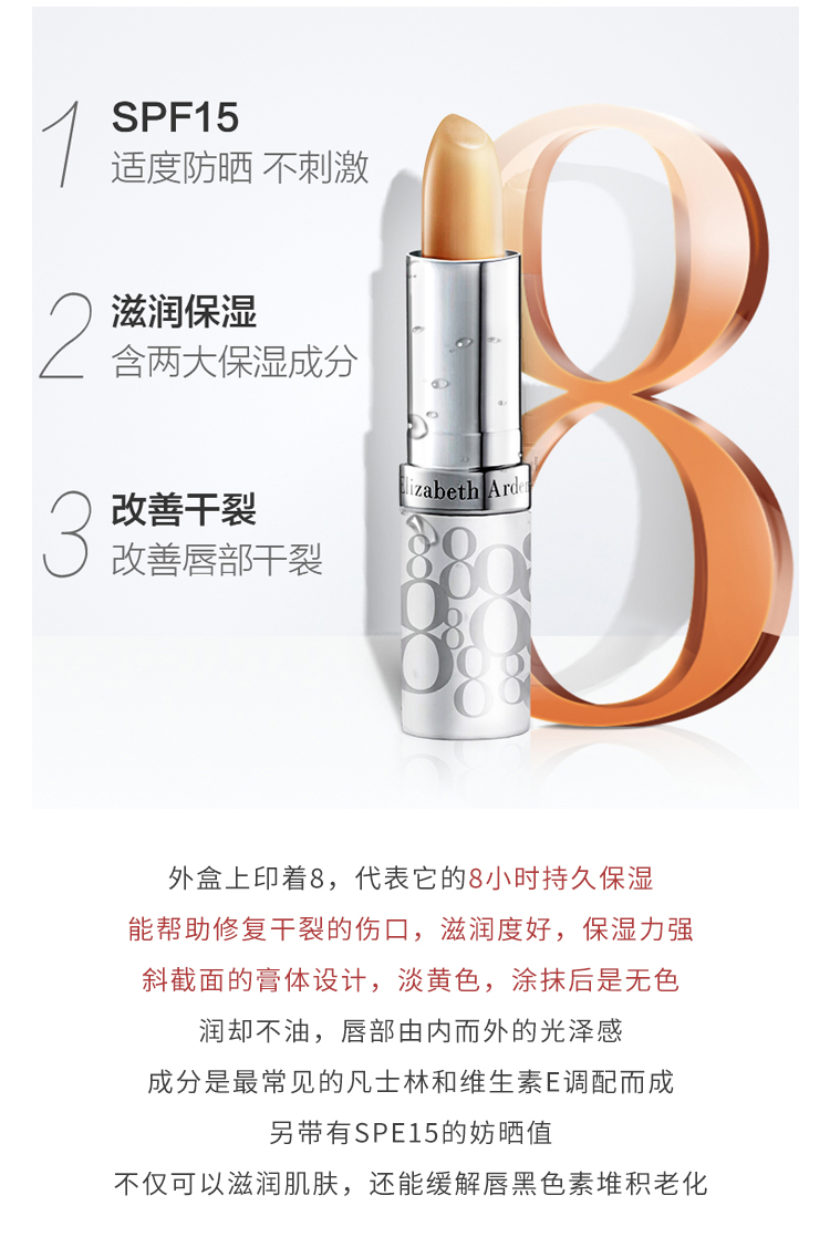 伊丽莎白雅顿8小时保湿补水滋润防晒SPF15持久滋润经典润唇膏3.7g