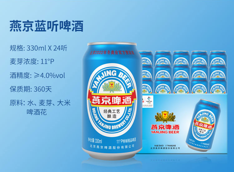 燕京啤酒 11度 蓝听啤酒330ml*24听整箱装 特制精品啤酒