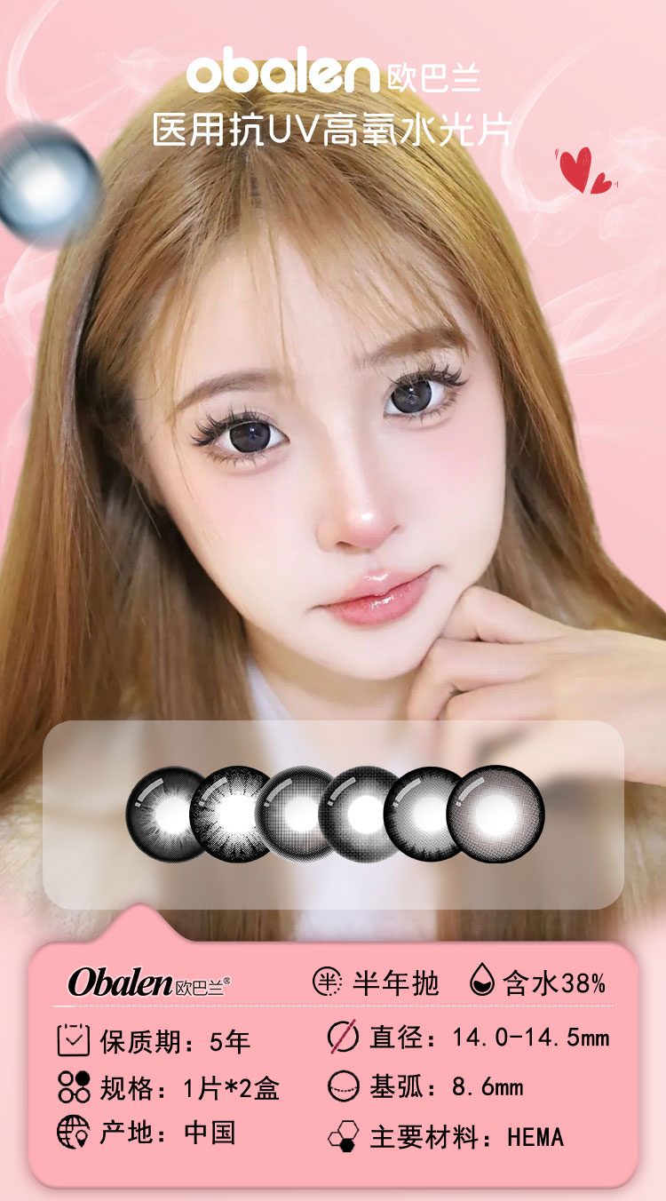 Obalen【第2副0元】半年抛美瞳【黑色合集】欧巴兰自然妈生瞳网红隐形眼镜2片装