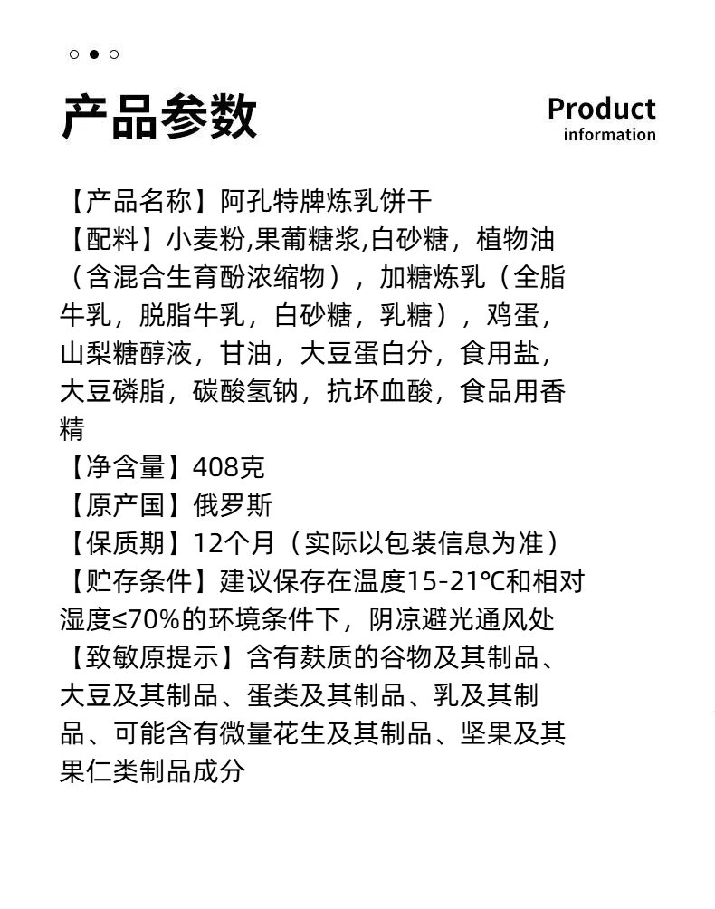 俄罗斯进口阿孔特牌炼乳饼干408g