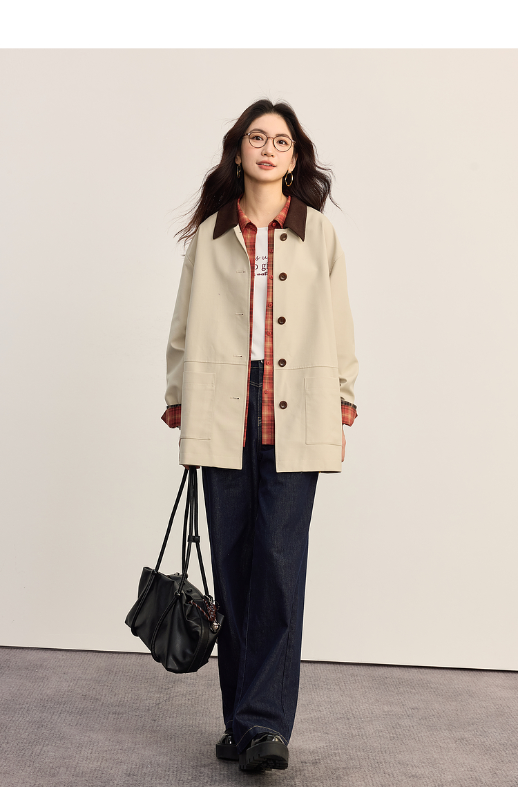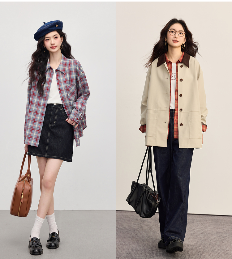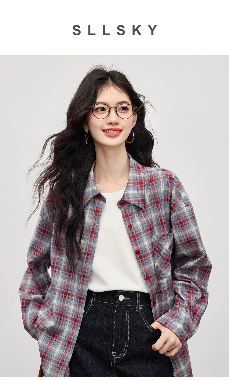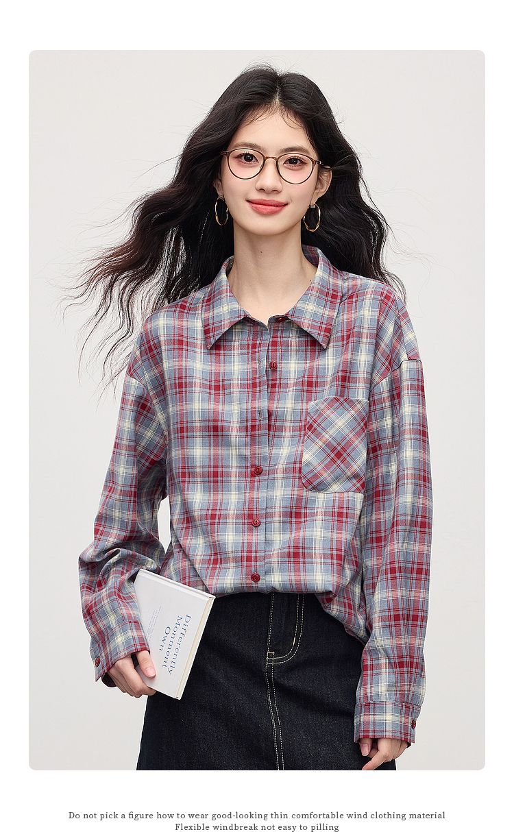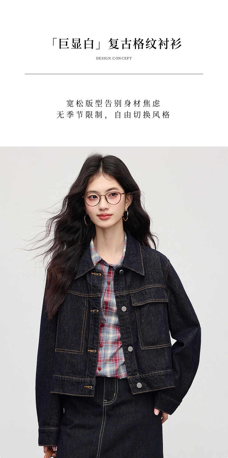 【周末秒杀】熙世界BF风复古格纹衬衫女宽松慵懒百搭时尚休闲衬衣2025秋季新款