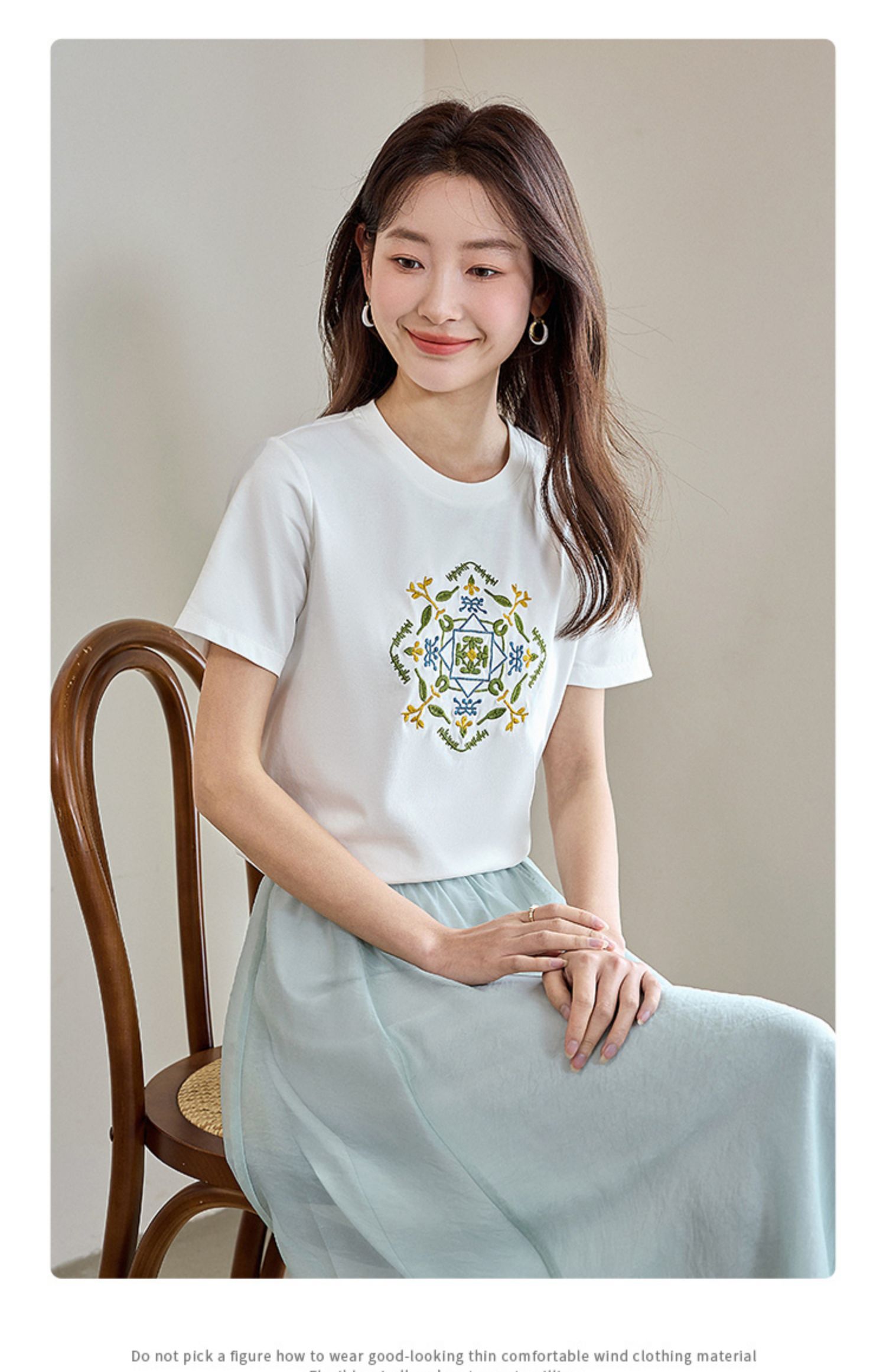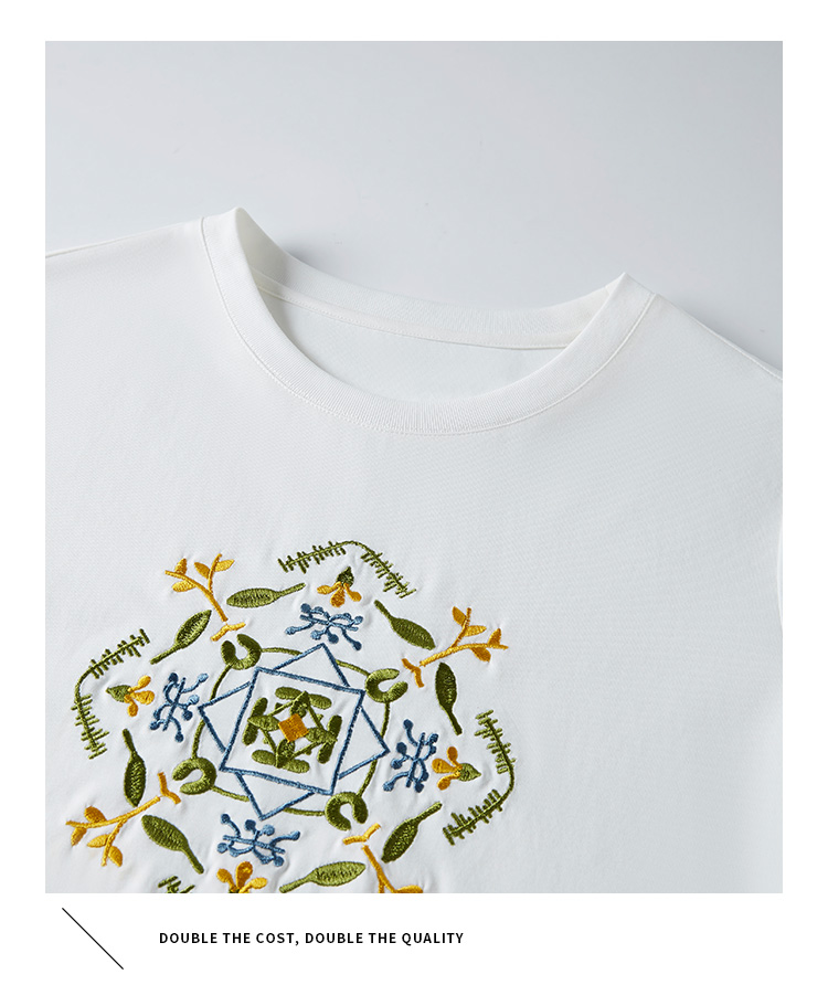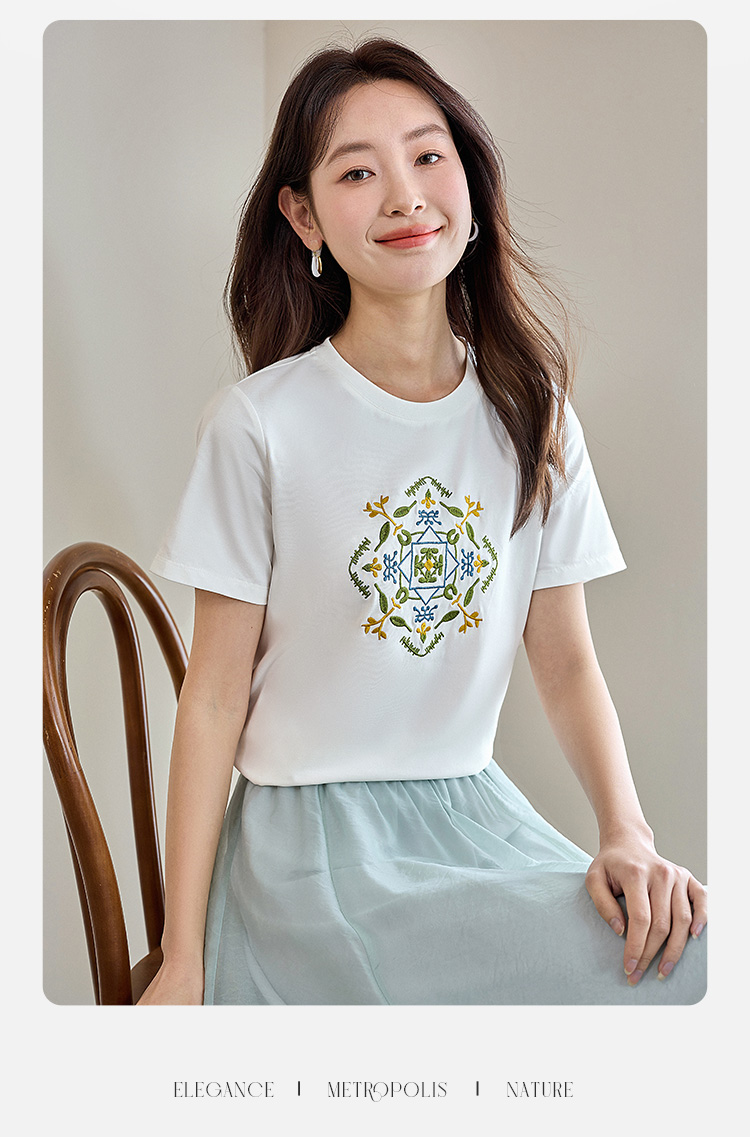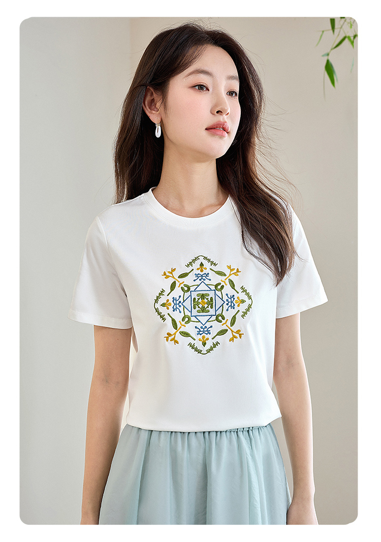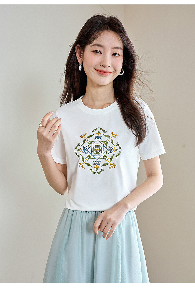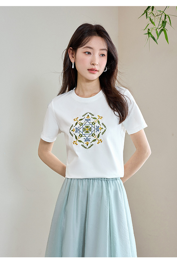 【清仓特卖】熙世界轻国风刺绣白色T恤女短袖2024夏季新款百搭圆领体恤衫上衣