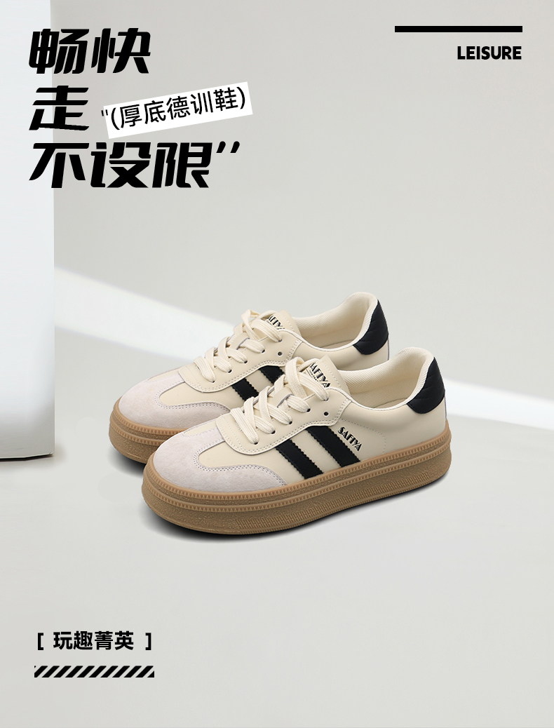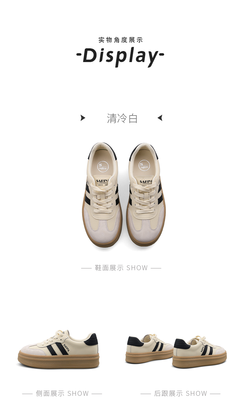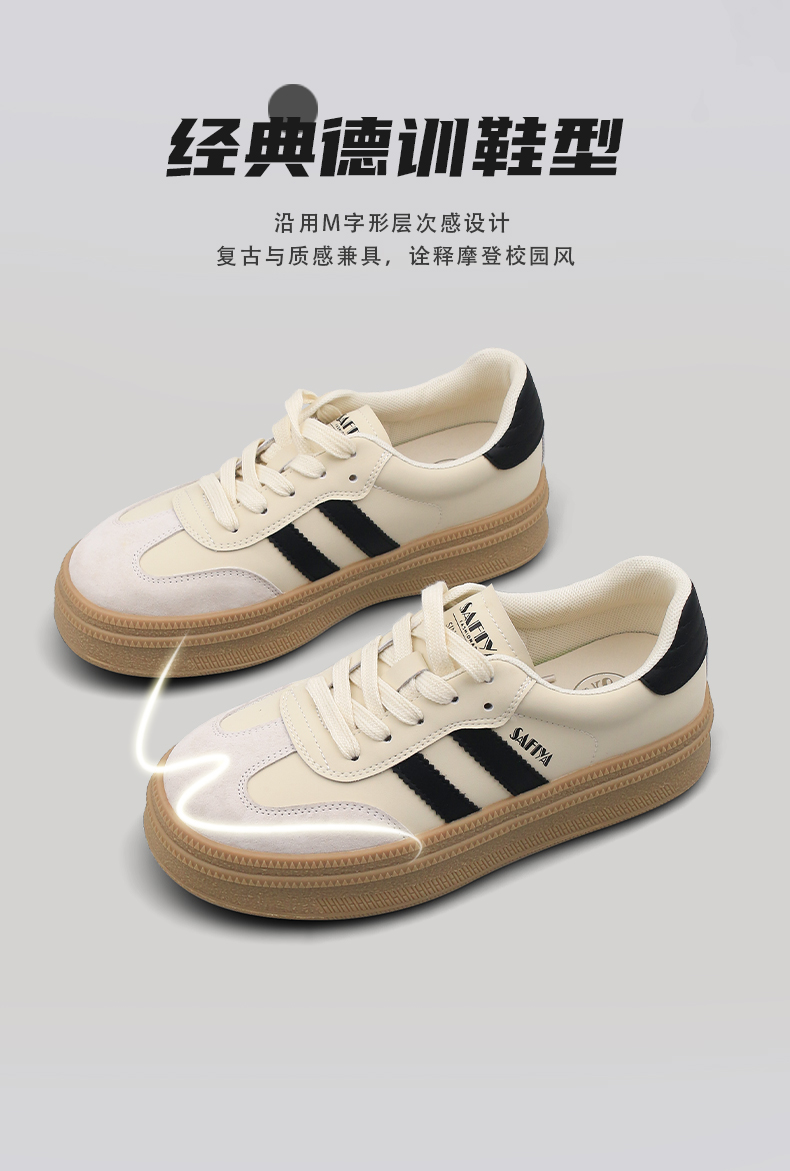Safiya/索菲娅2025学院风拼色百搭低帮休闲复古绒面厚底德训鞋SFD1112099