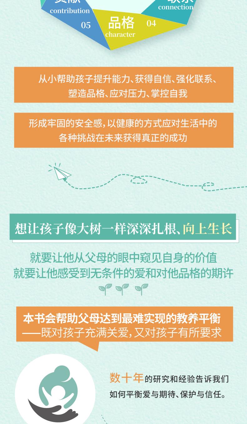通过本书,父母可以帮助孩子从小提升能力、获得自信、强化联系、塑造品格,形成牢固的安全感,学会以健康的方式应对生活中的各种挑战,从而成功且独立地走向未来,而这正是为人父母的优选成就。