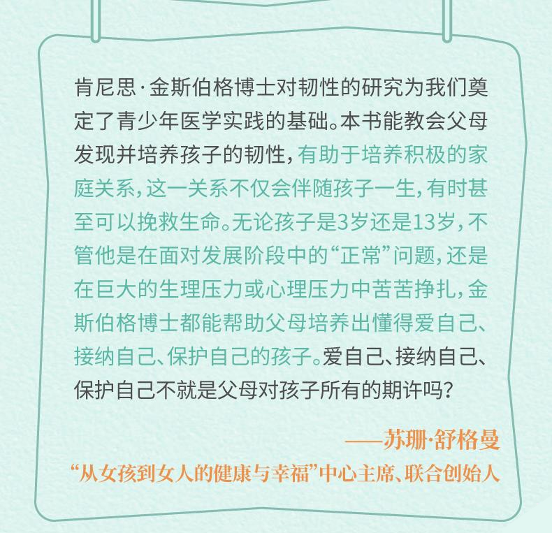 ★作者被誉为“美国社会韧性专家”,拥有儿童发展学和人类发展学双学位,是美国很好儿科医院的青少年医生。