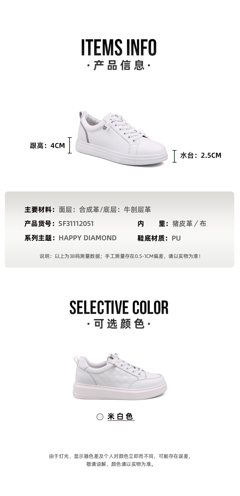 Safiya/索菲娅 舒适一脚蹬2023年春季新款厚底内增高百搭休闲板鞋 SF31112051
