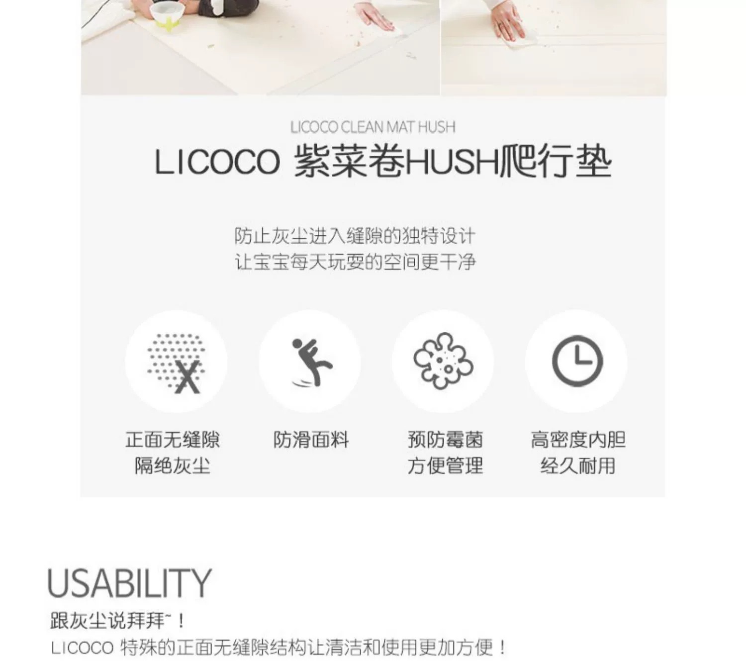 【品牌直供】韩国licoco紫菜卷防霉爬行垫 hush