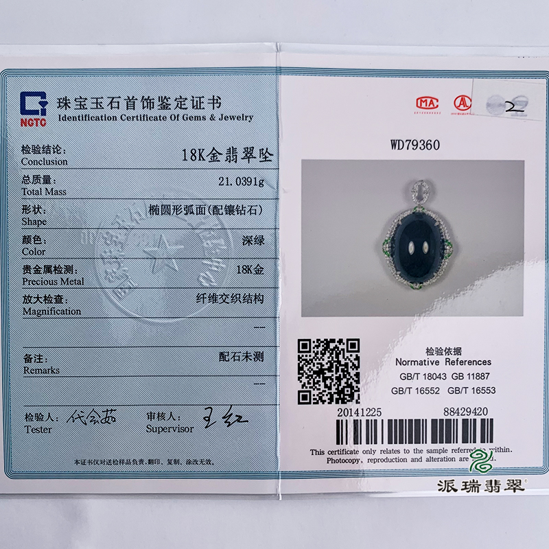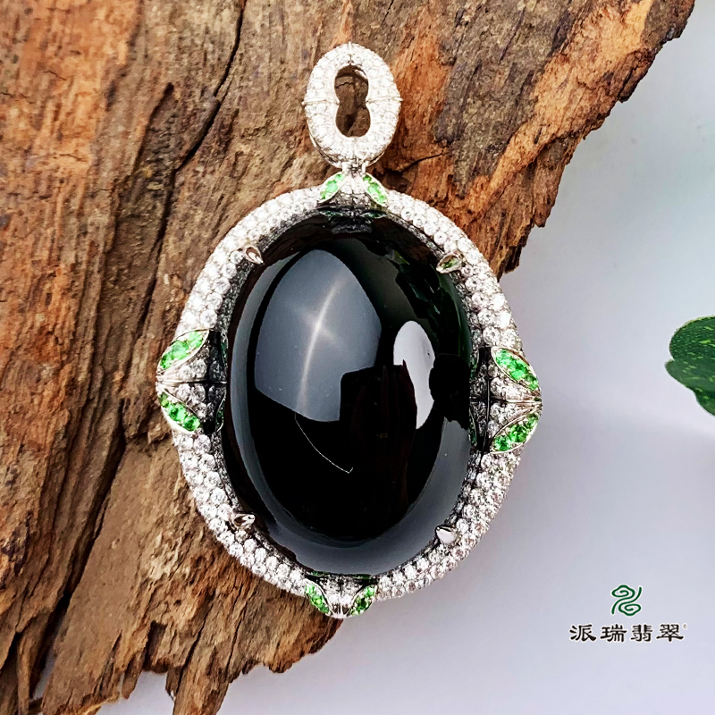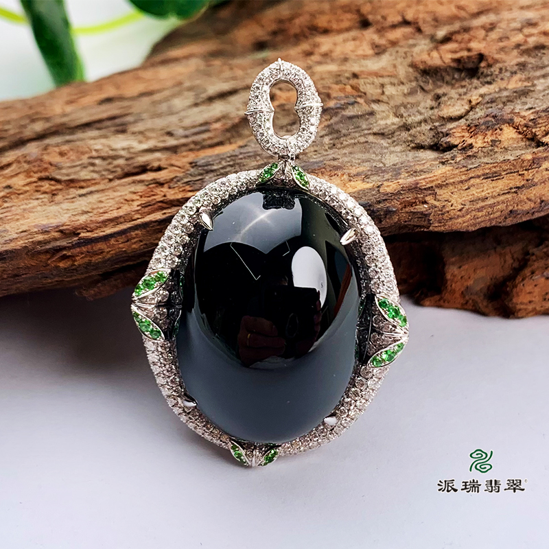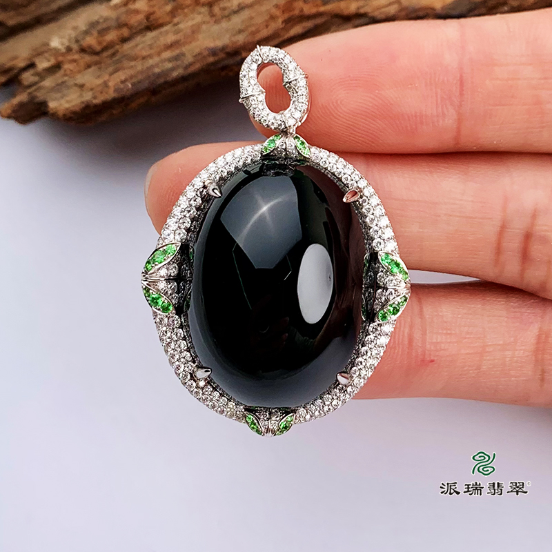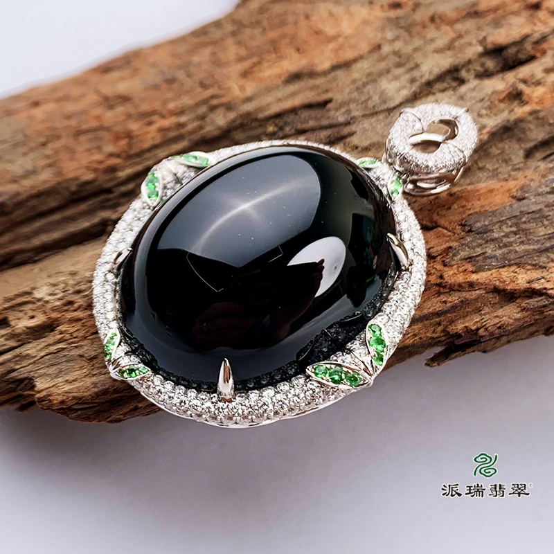 派瑞翡翠 18k金翡翠吊坠 糯种 墨翠