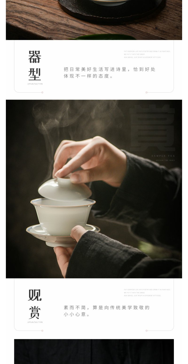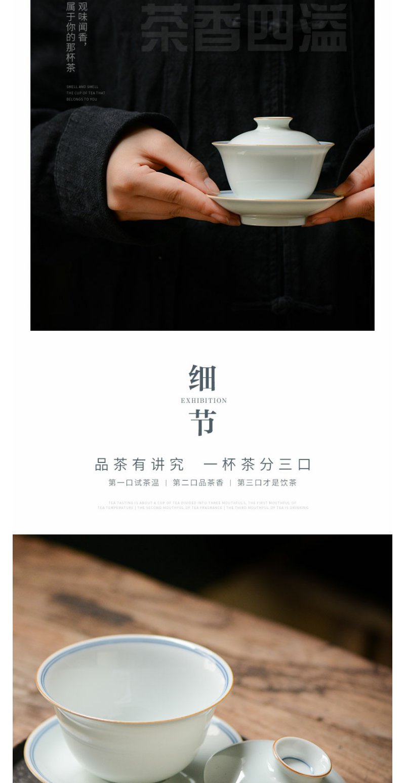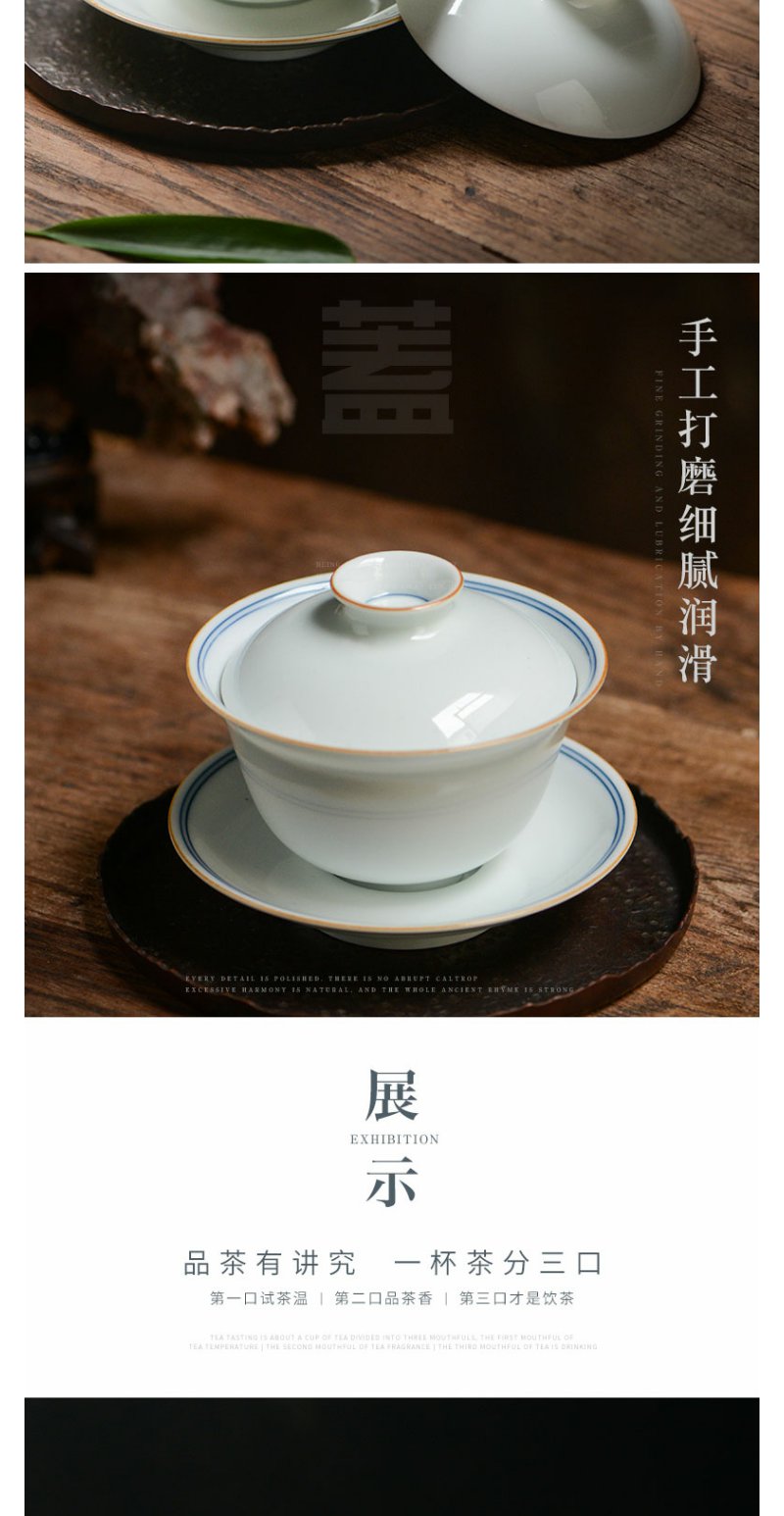 抱翁堂 青白釉双线盖碗 120ml 口径9.3cm 高8.2cm 景德镇抱翁堂手工经典薄胎单色釉陶瓷双线盖碗