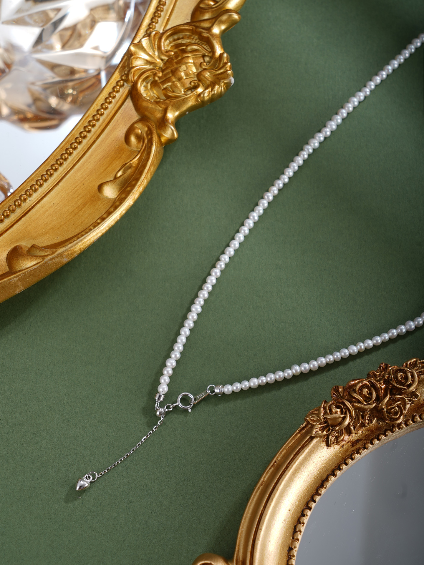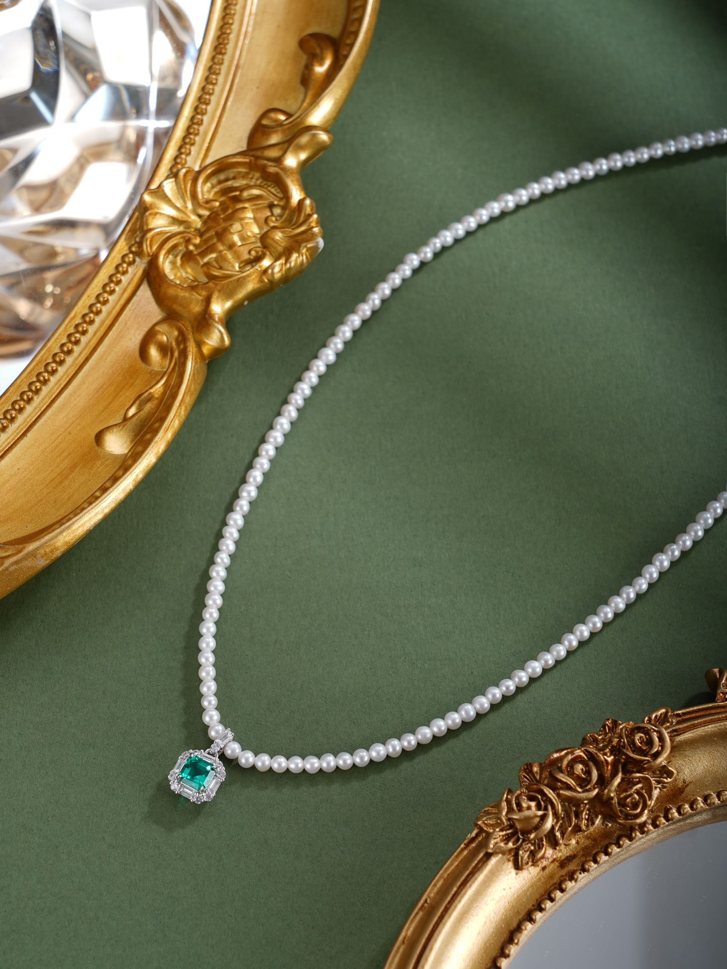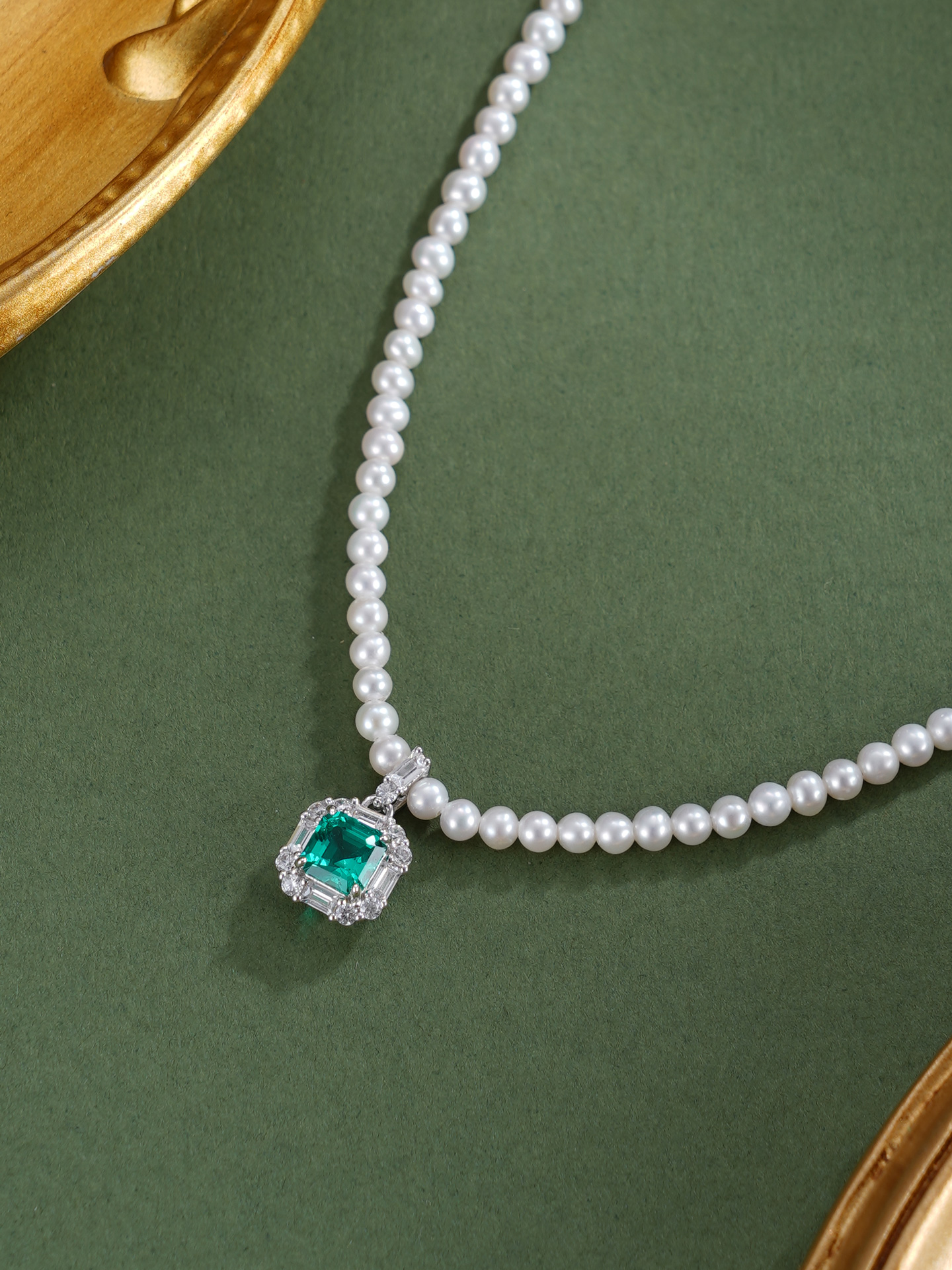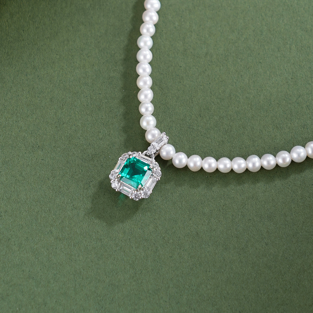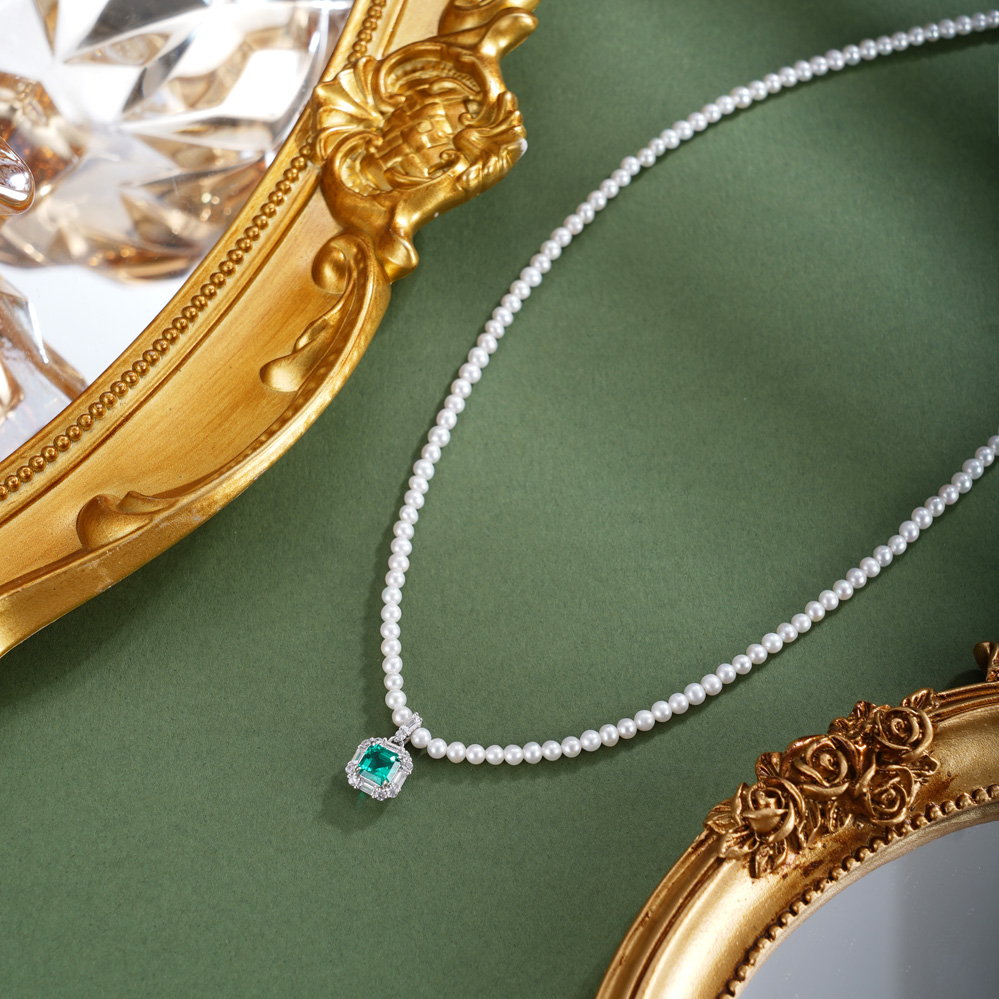 子佩集【绿野之诗】银S925珍珠惜王妃项链【ZZXL011】2.8mm珠绿方块2601