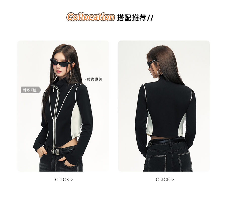 P&X设计师女装2025秋季奶茶系T恤撞色两件套上衣825315178 白/红