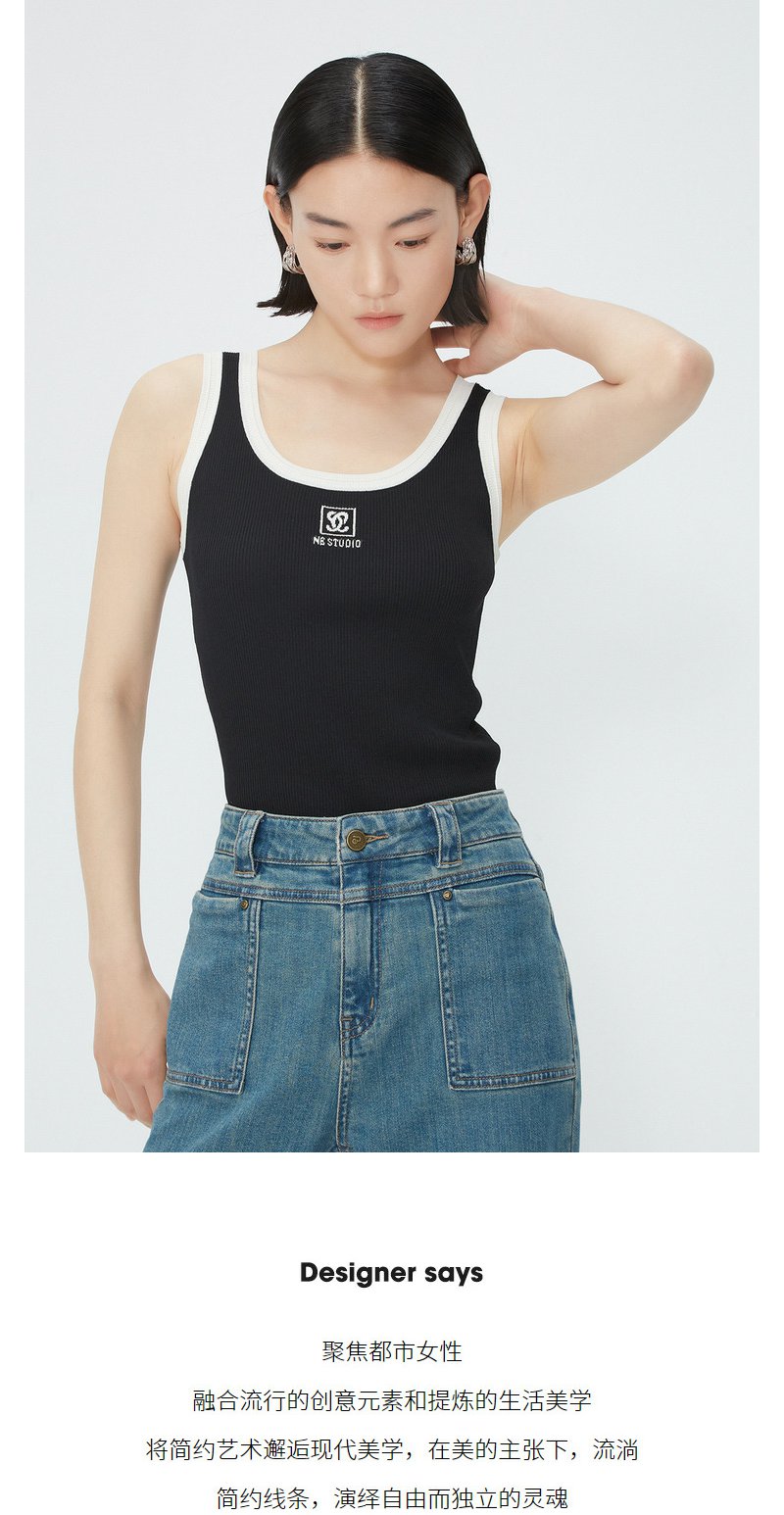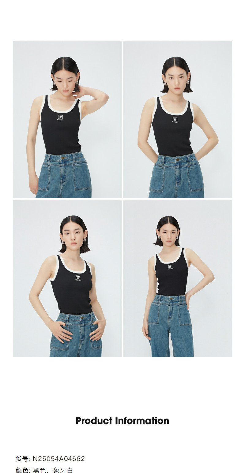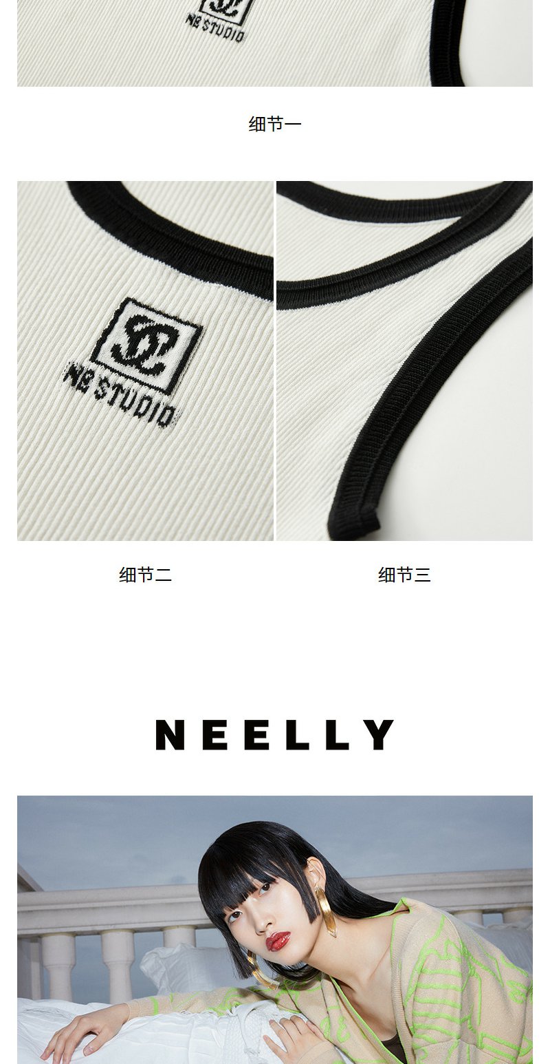 NEELLY纳俪商场同款夏季新款时尚撞色无袖背心女修身显瘦套头上衣N25054A04662