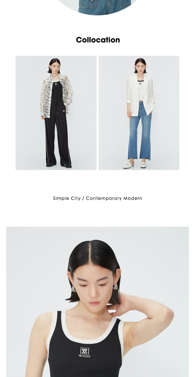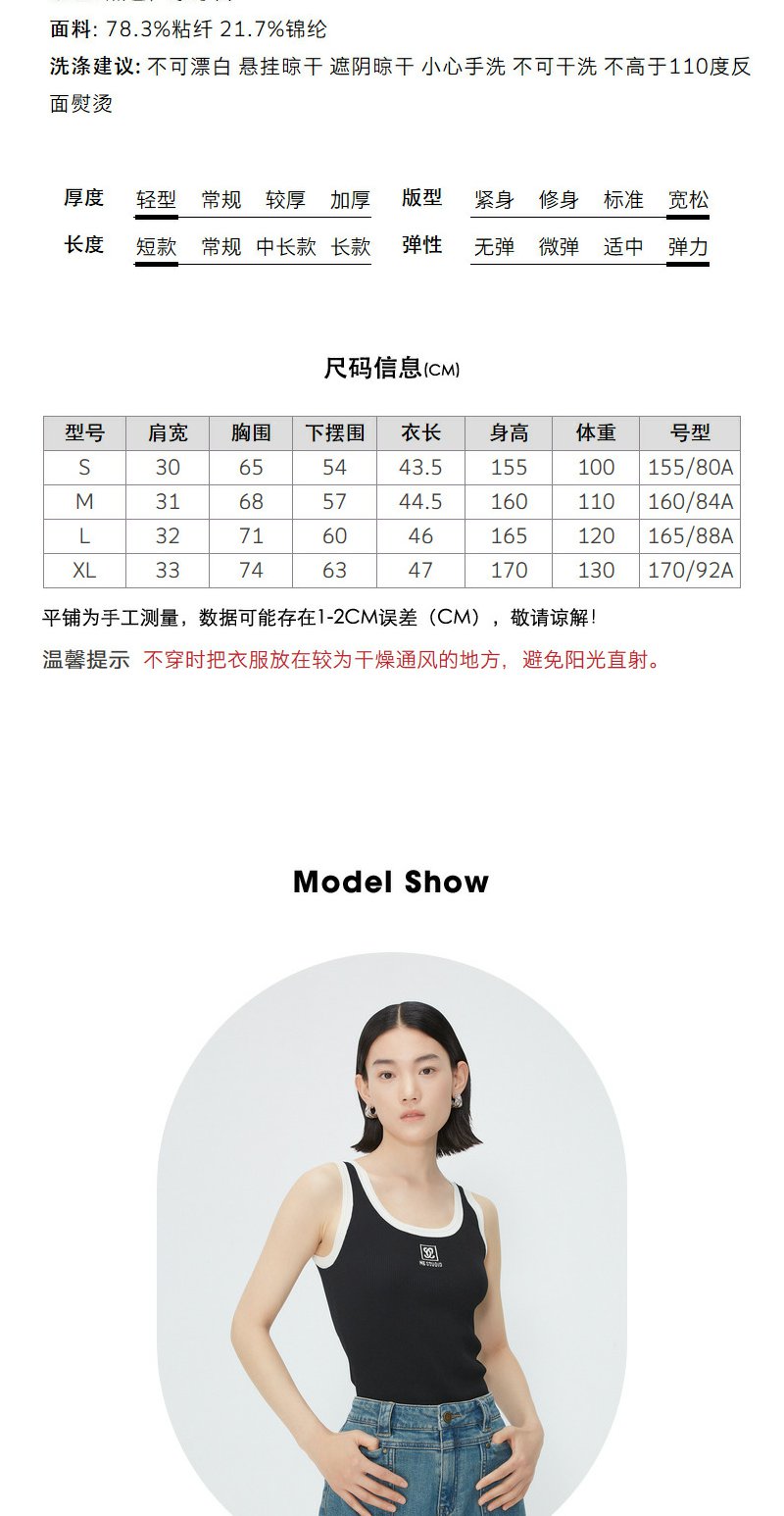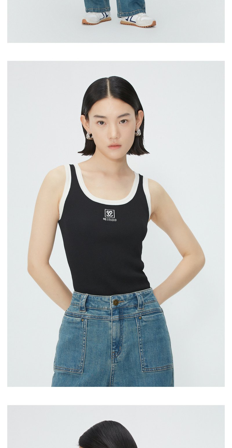 NEELLY纳俪商场同款夏季新款时尚撞色无袖背心女修身显瘦套头上衣N25054A04662