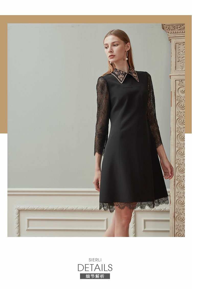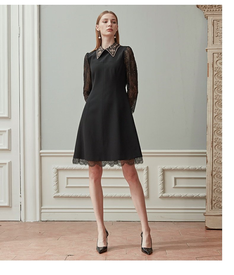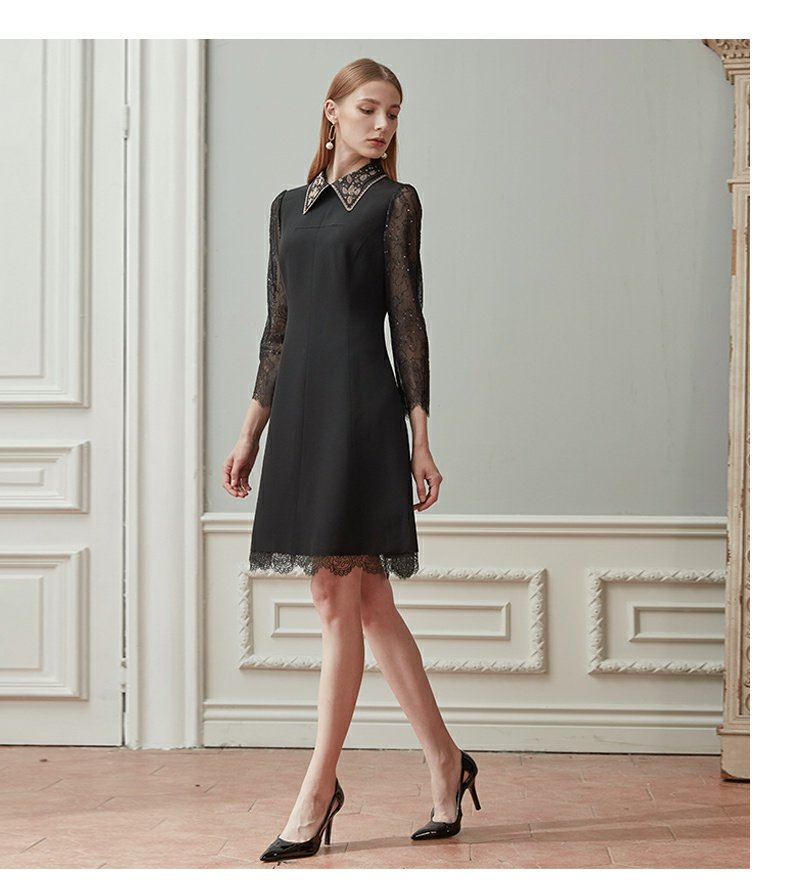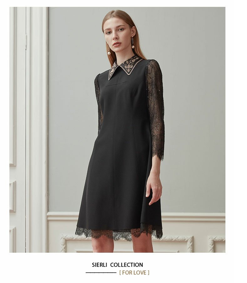LA807斯尔丽瑟俪2021年春季上新衬衫领烫钻小礼服