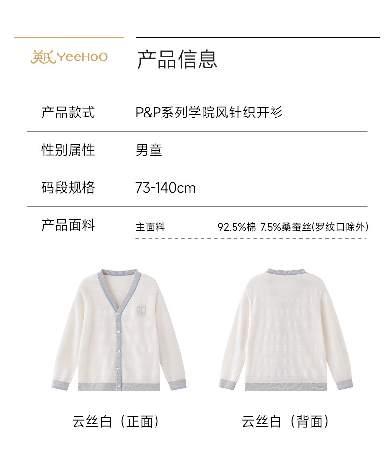 英氏男童毛衫外套夏季新款针织开衫薄款防晒衣YRWWJ2S025A