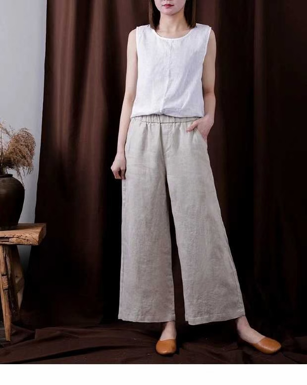 麻直筒裤88666