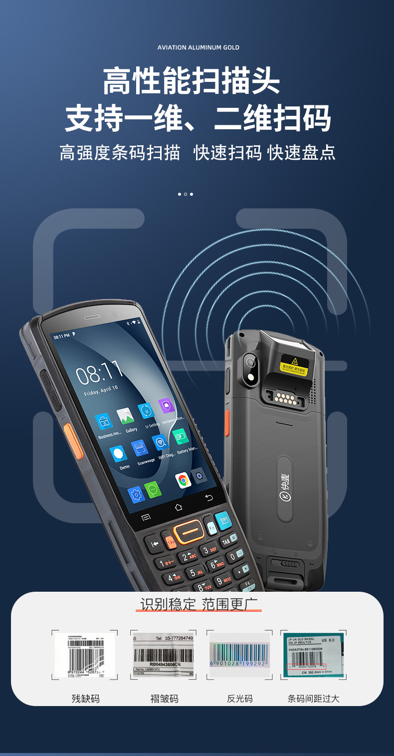 快麦PDA移动条码数据采集器手持终端wifi扫码枪电商ERP万里牛管家婆聚水旺店通快递物流出入仓库盘点