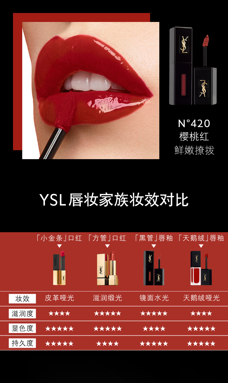 【授权商品】YSL圣罗兰黑管唇釉镜面#420
