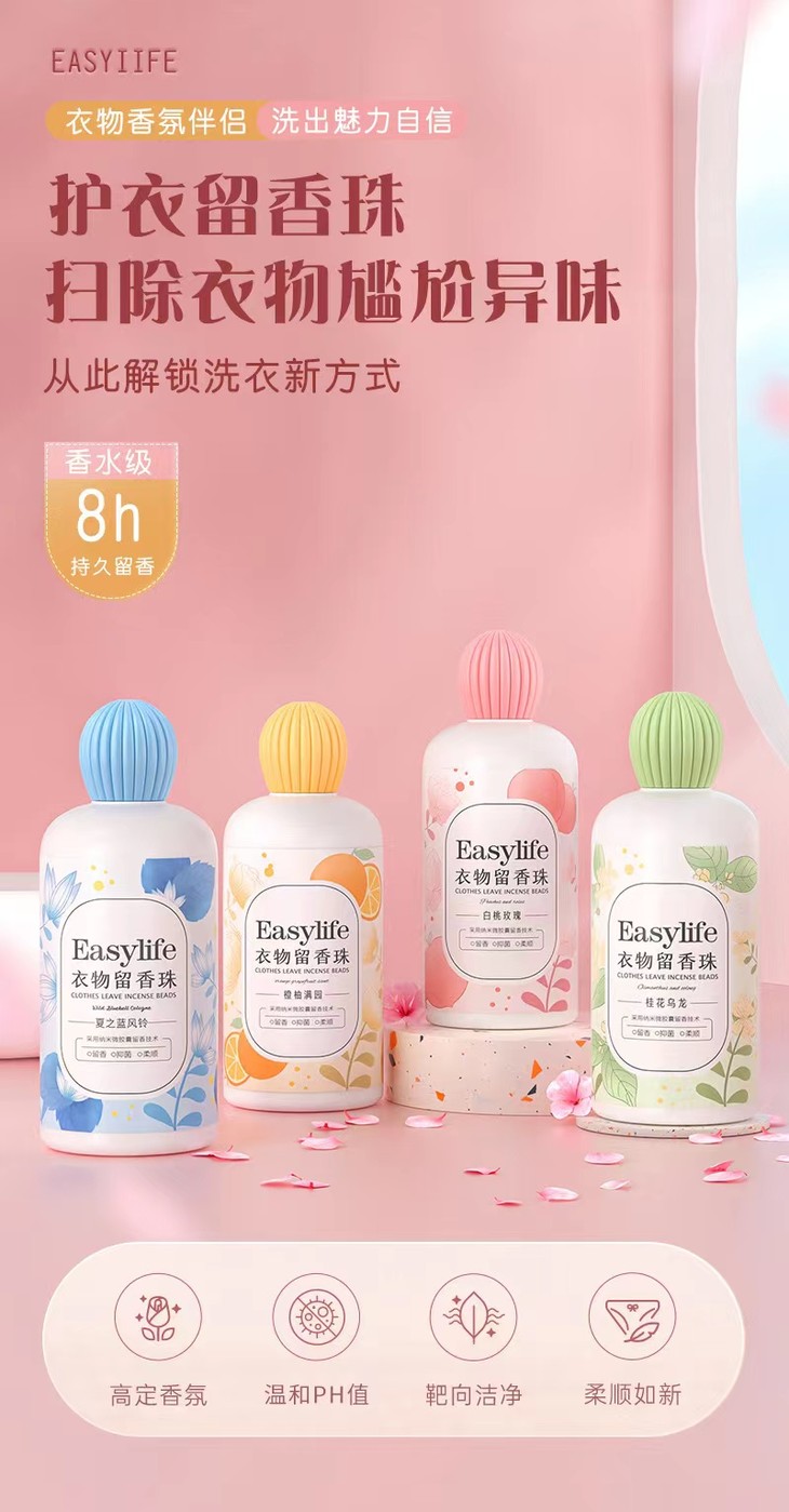 超值4瓶装!EasyLife香氛衣物留香珠 持久衣物柔顺剂 花香型去异味除螨衣物伴侣150g/瓶