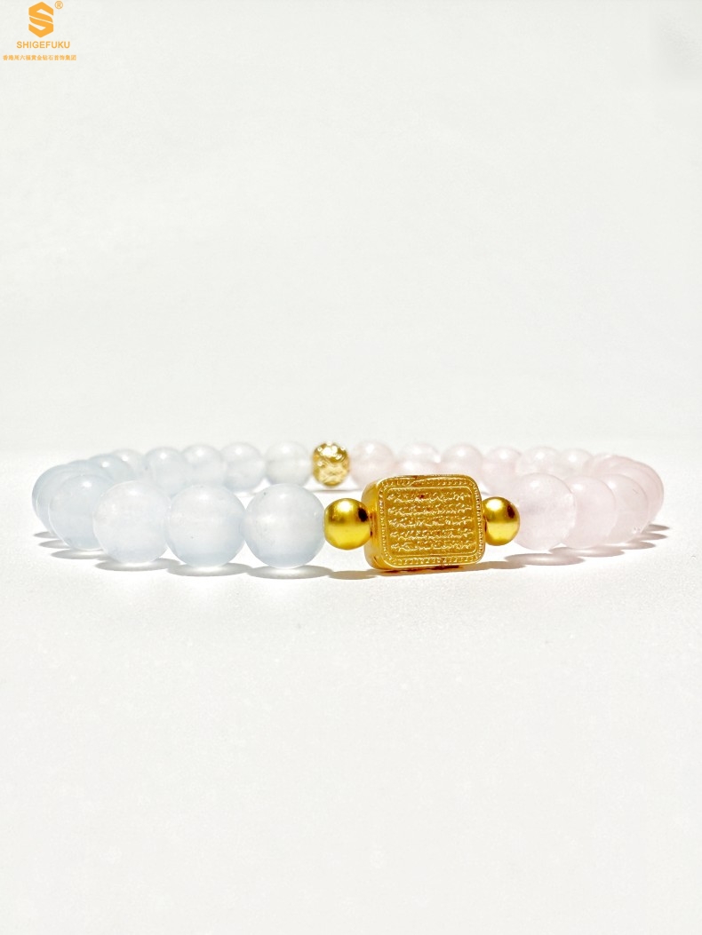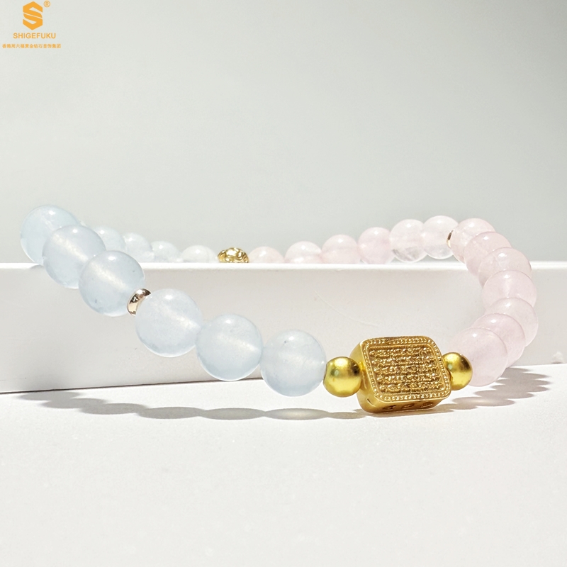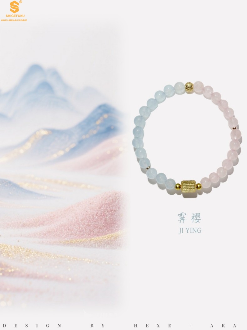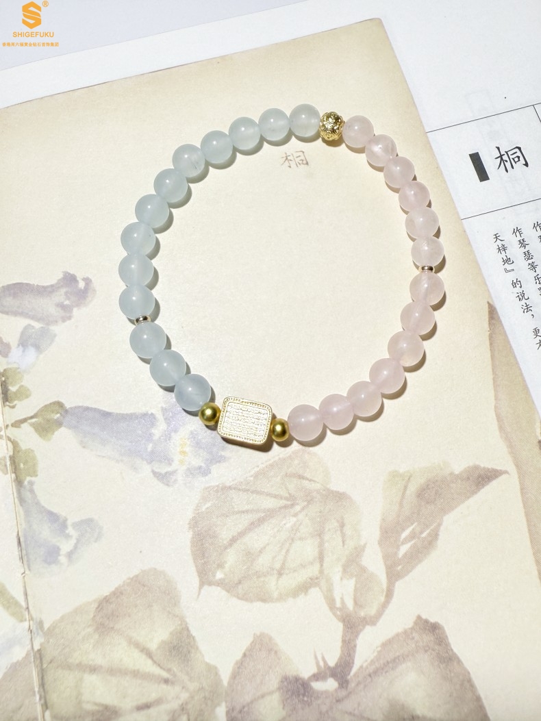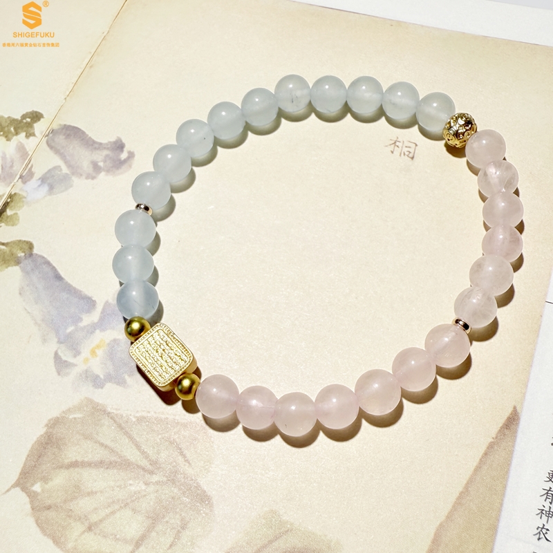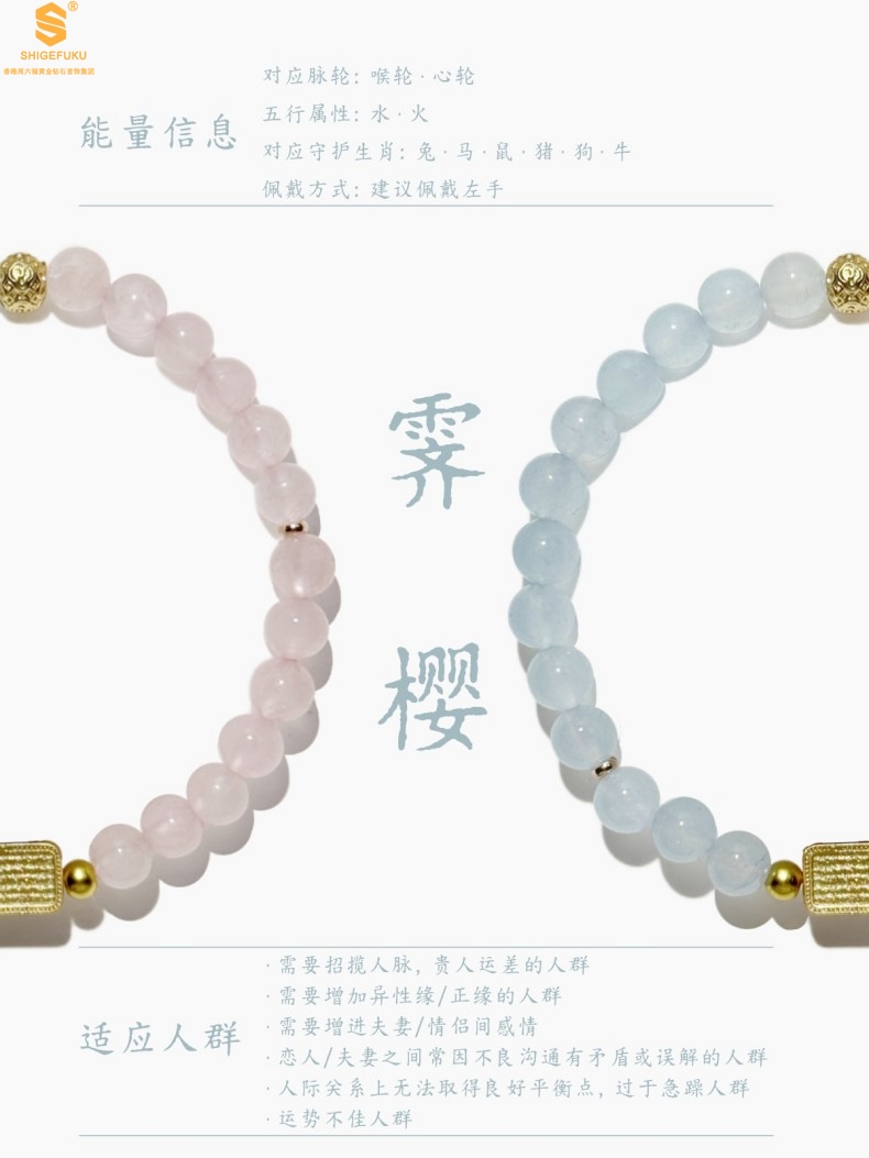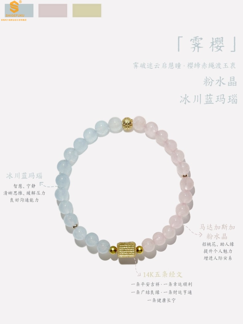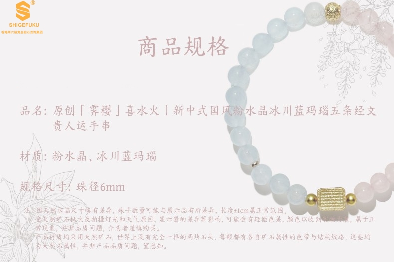 【品牌授权】【香港周六福】原创「霁樱」喜水火丨新中式国风粉水晶冰川蓝玛瑙五条经文贵人运手串