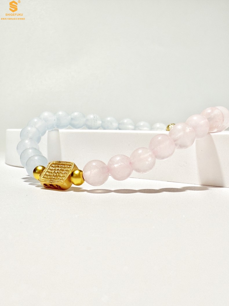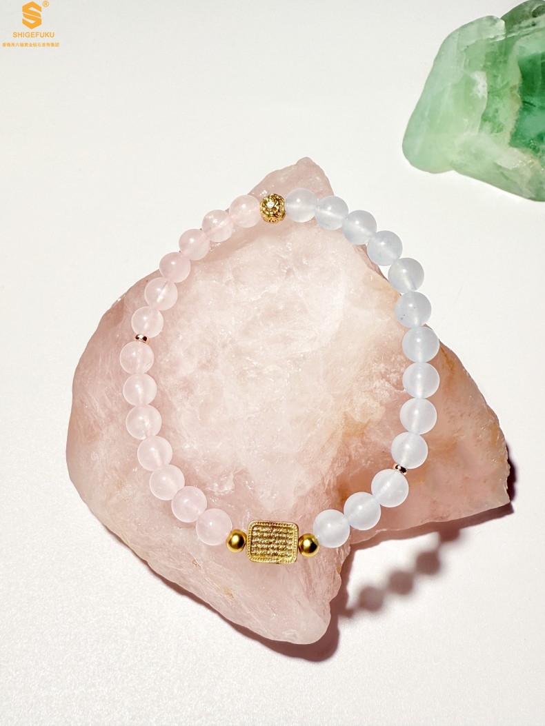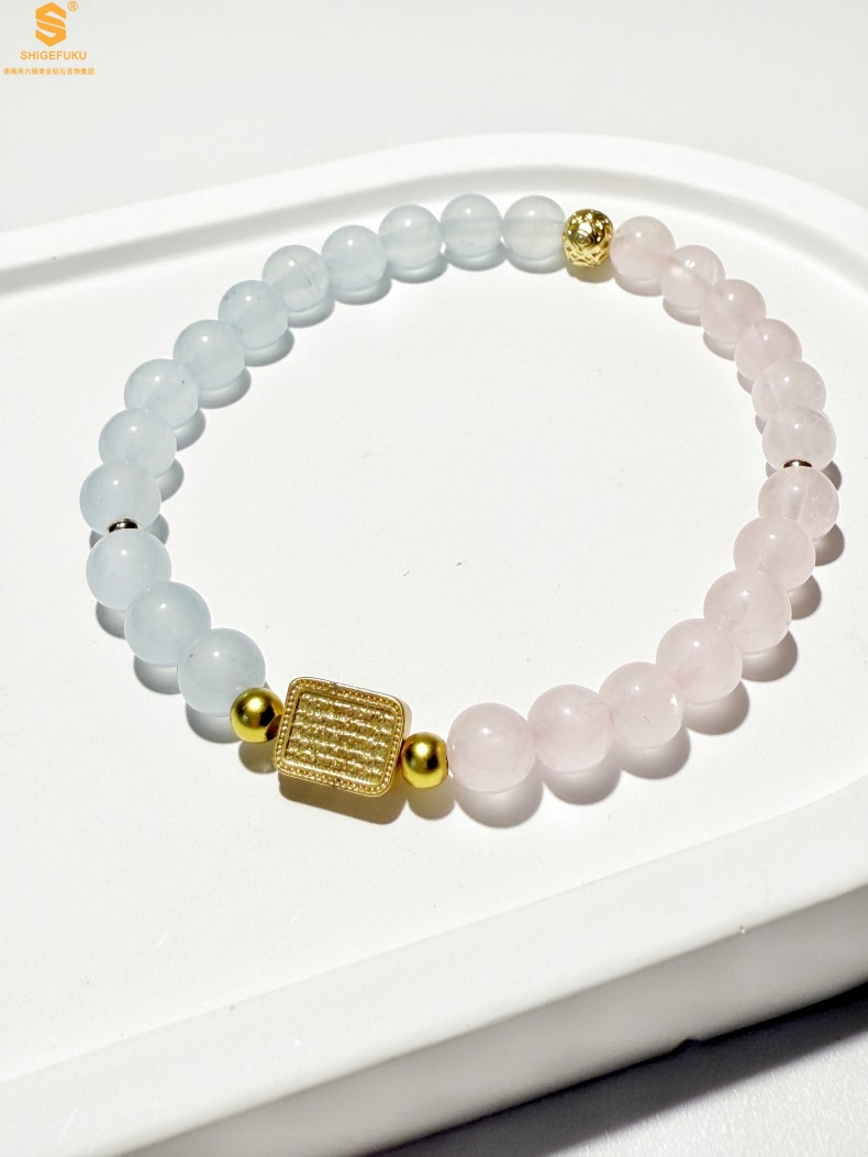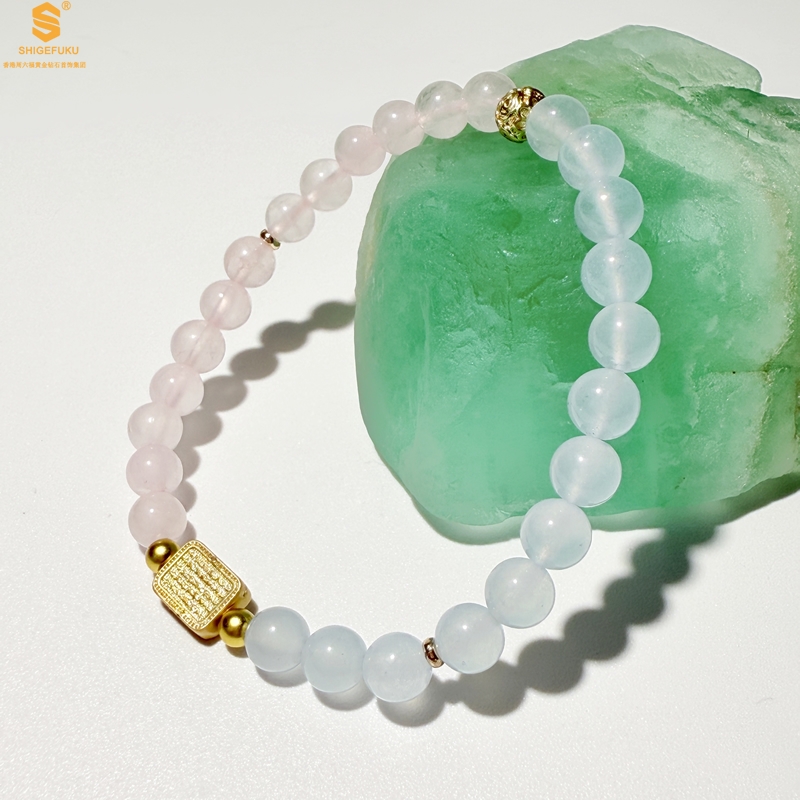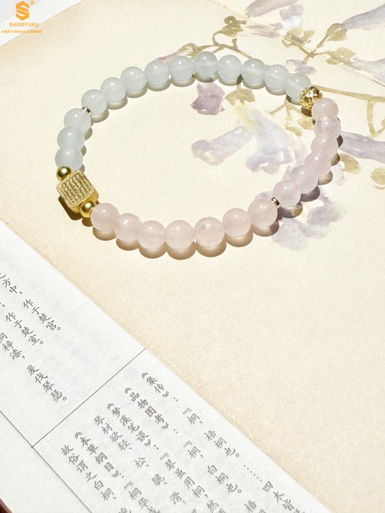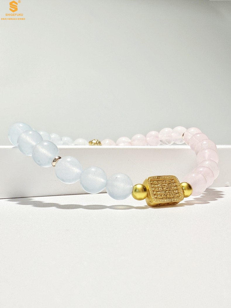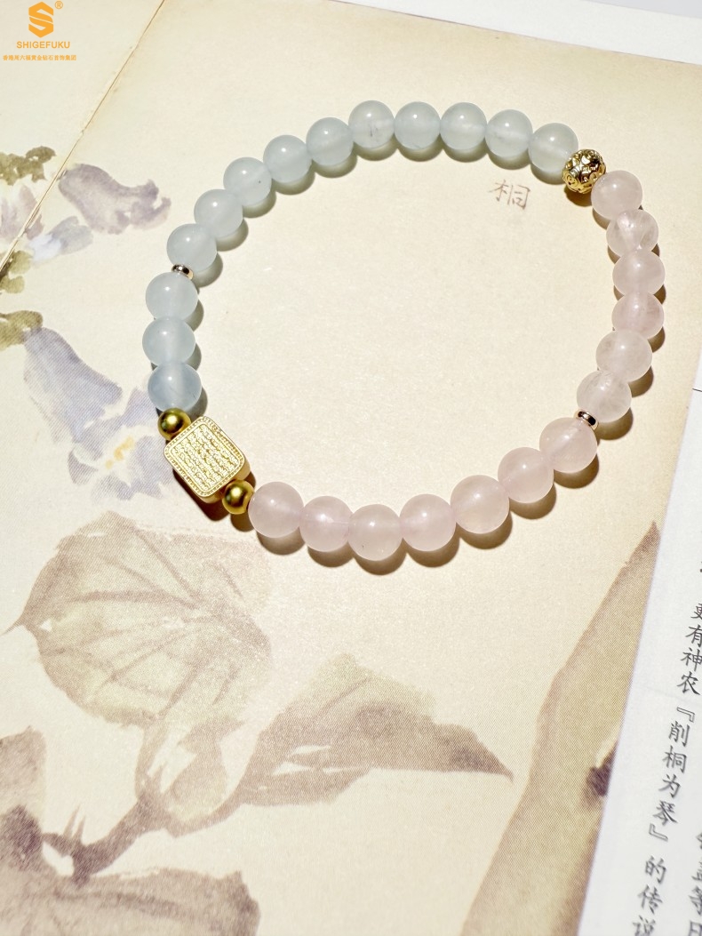 【品牌授权】【香港周六福】原创「霁樱」喜水火丨新中式国风粉水晶冰川蓝玛瑙五条经文贵人运手串