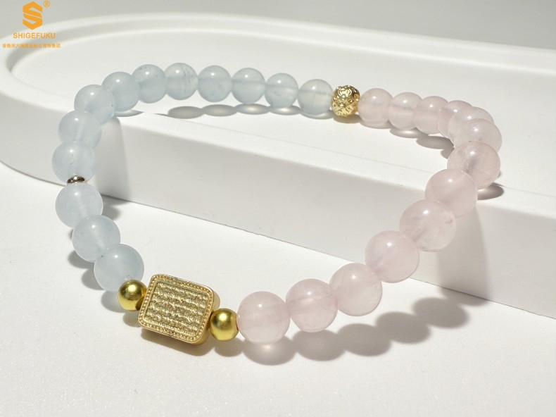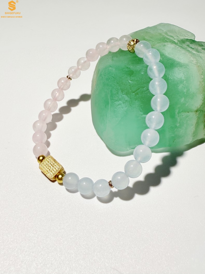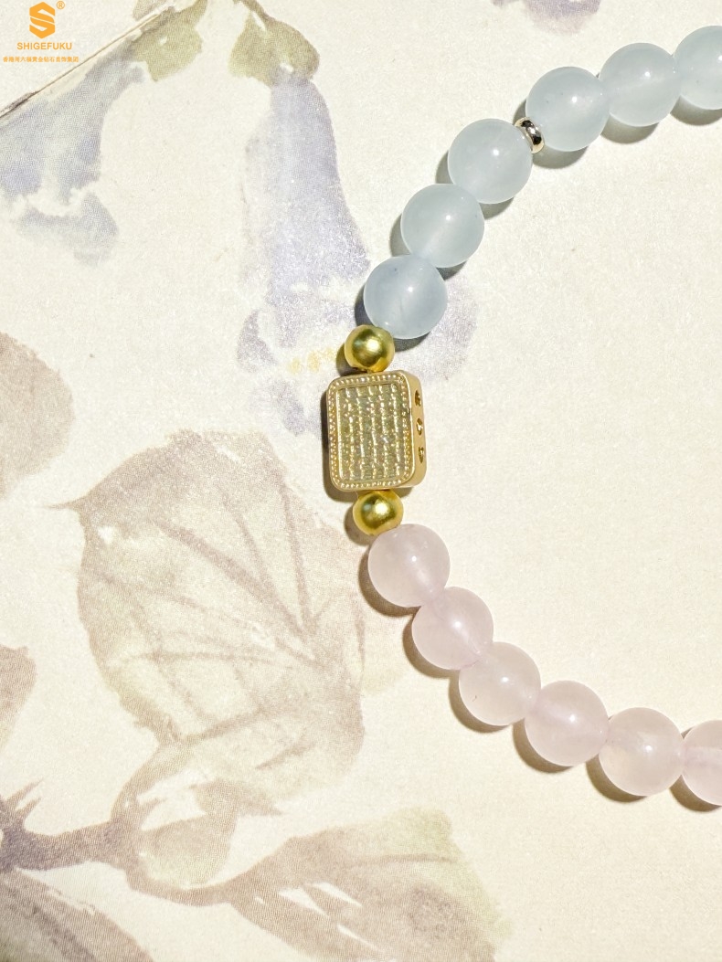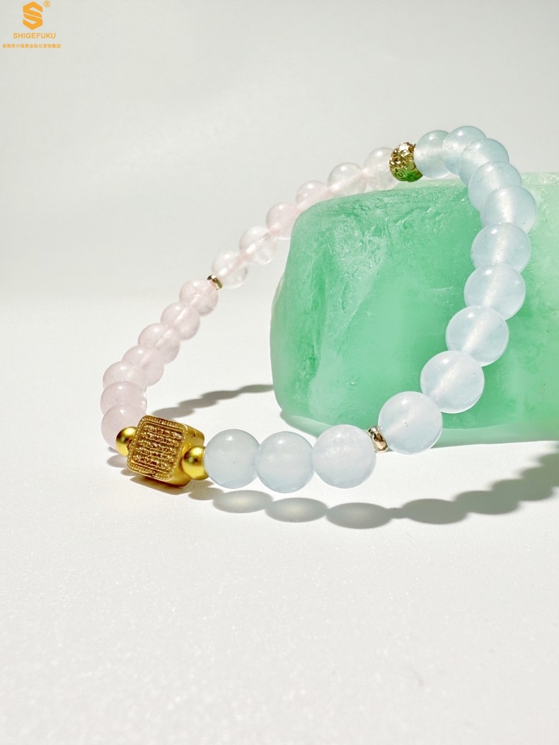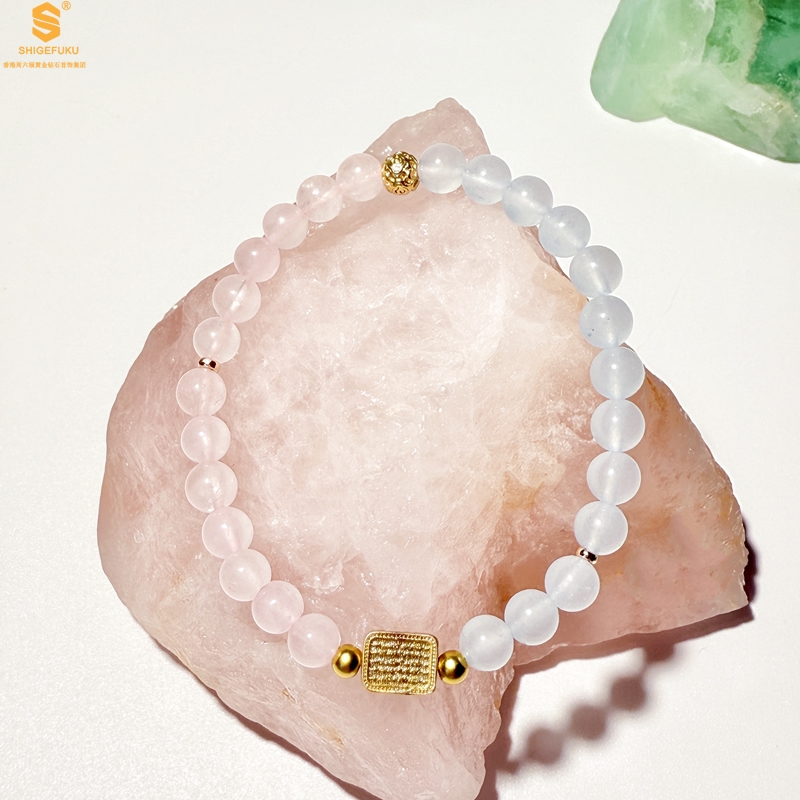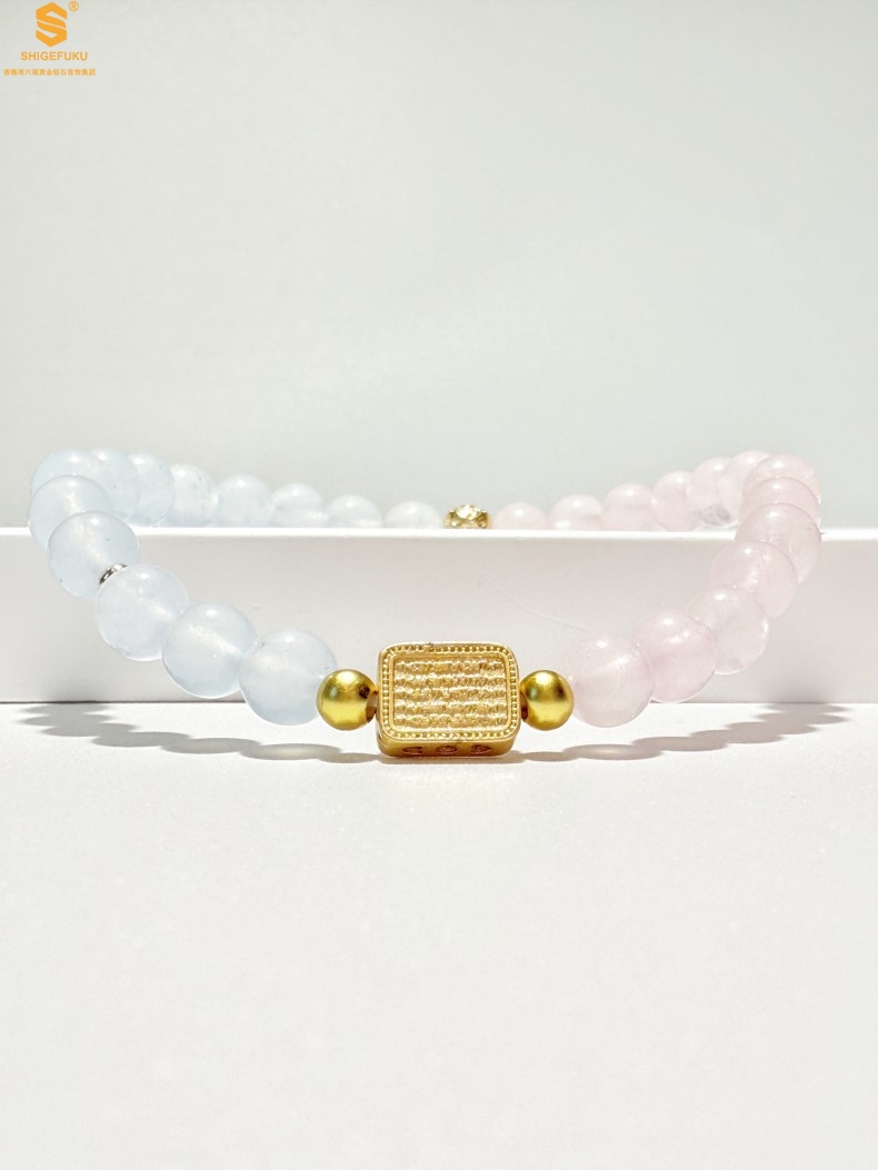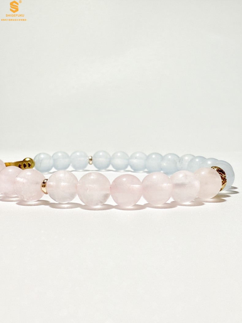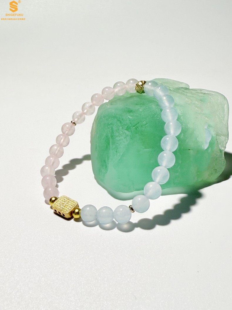 【品牌授权】【香港周六福】原创「霁樱」喜水火丨新中式国风粉水晶冰川蓝玛瑙五条经文贵人运手串