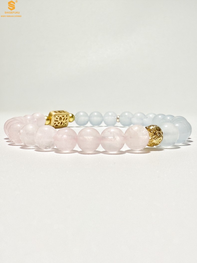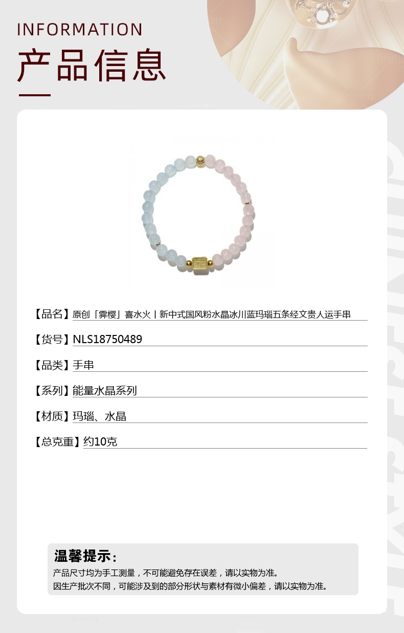 【品名】原创「霁樱」喜水火丨新中式国风粉水晶冰川蓝玛瑙五条经文贵人运手串